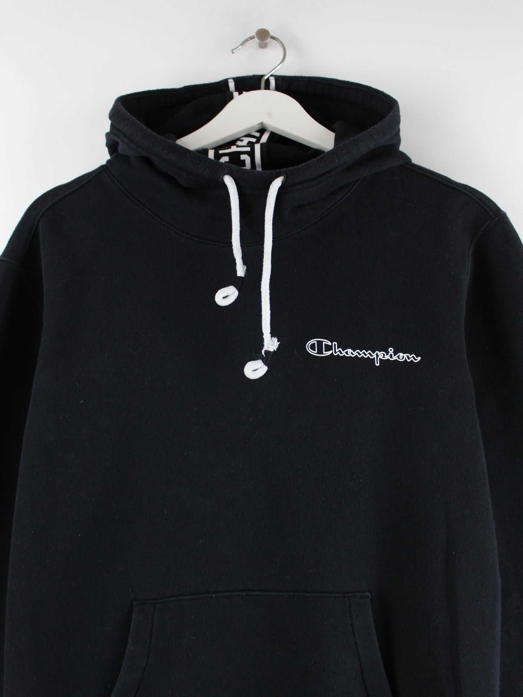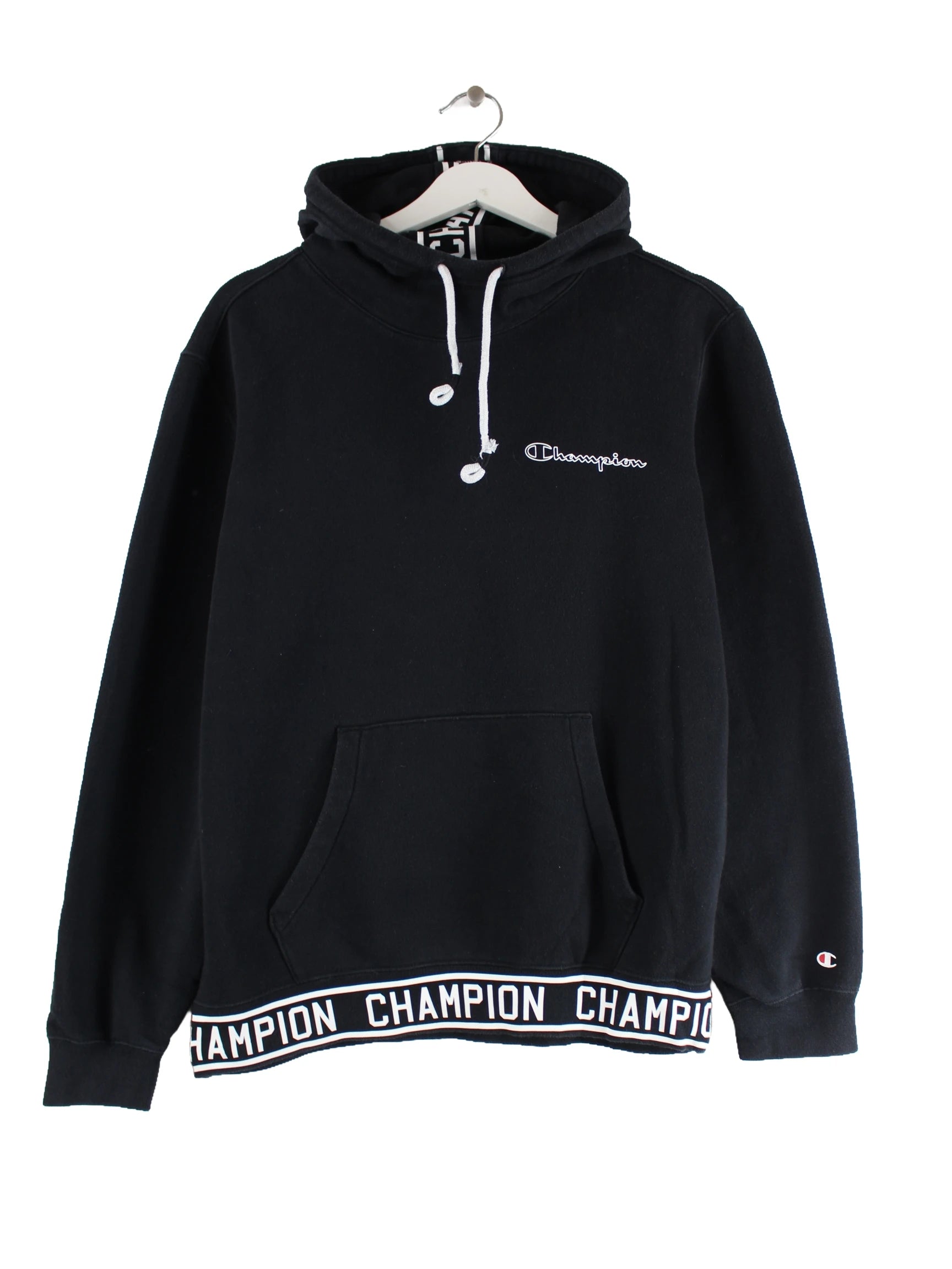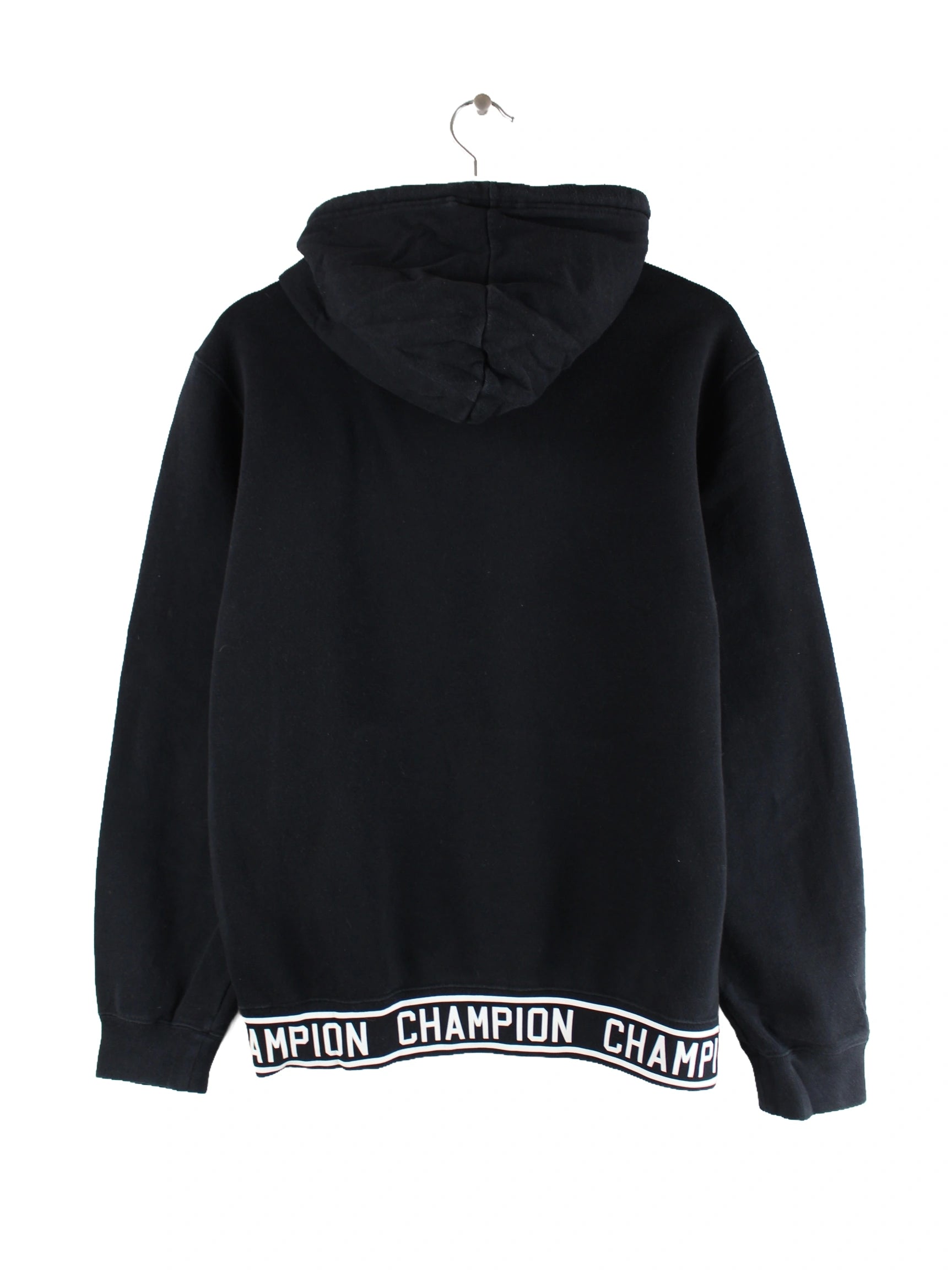 Hoodie von Champion in Größe M. Er ist aus einer Baumwollmischung hergestellt und in Schwarz bei uns zu bekommen.