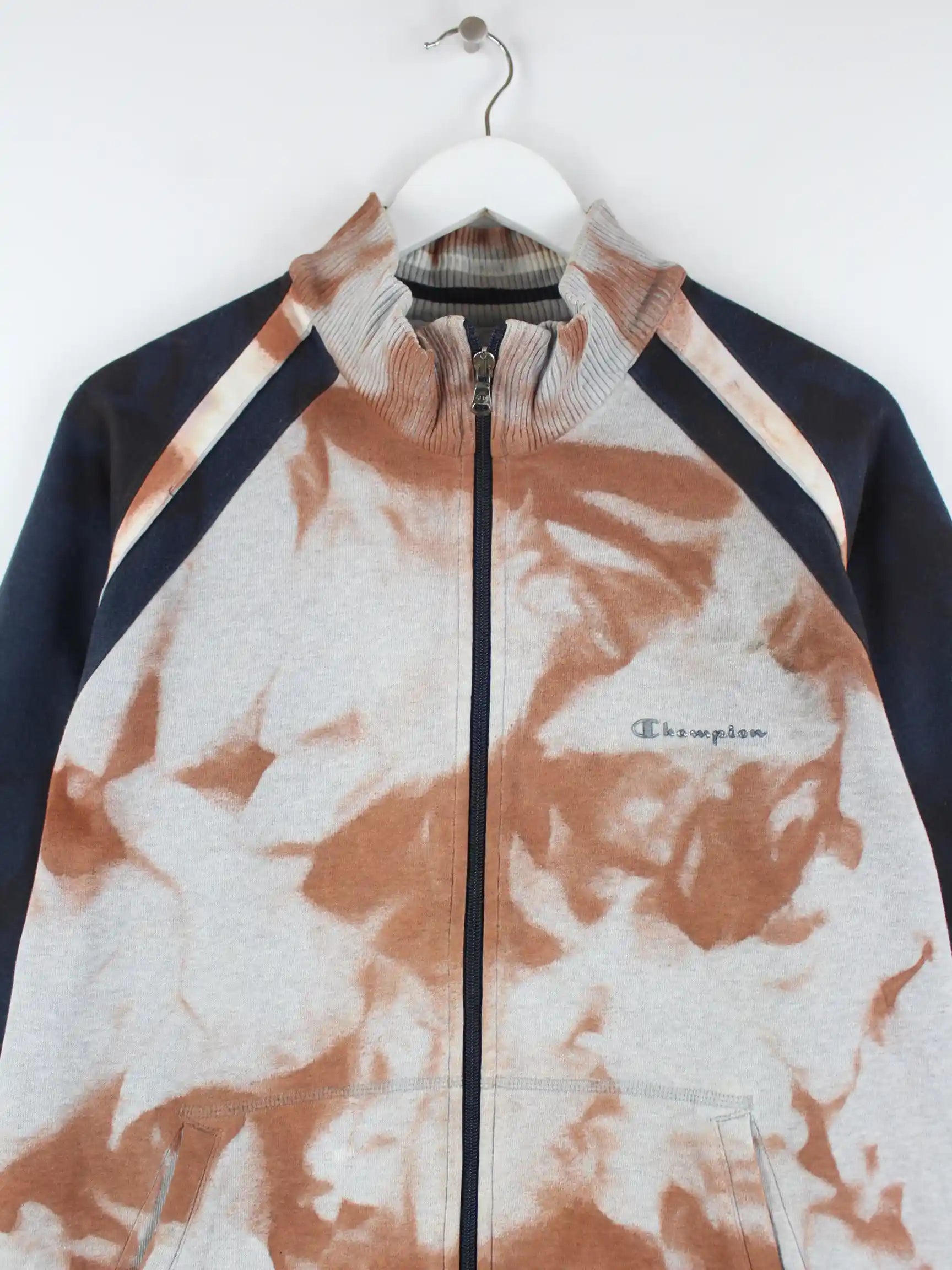 Graue Sweatjacke von Champion in Größe L. Sie ist aus einer Baumwollmischung produziert. Den Zustand würden wir als 'In Ordnung' bezeichnen (vergl. Bilder).