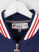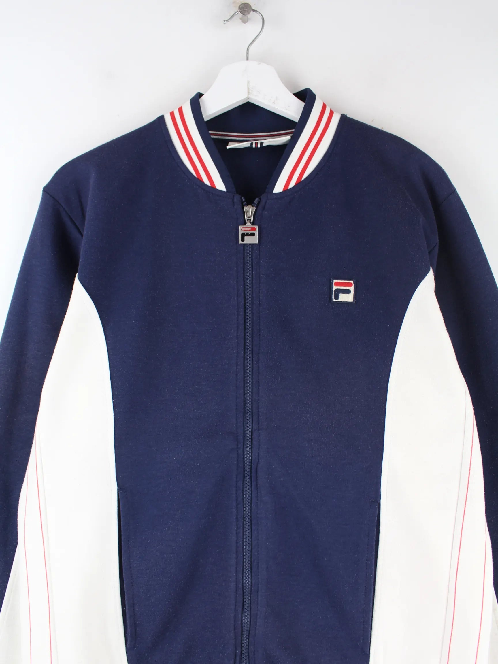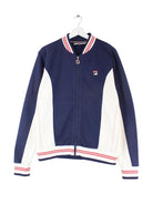 Sweatjacke aus dem Hause Fila in Größe M. Sie ist aus einer Baumwollmischung gemacht und in Blau lieferbar.
