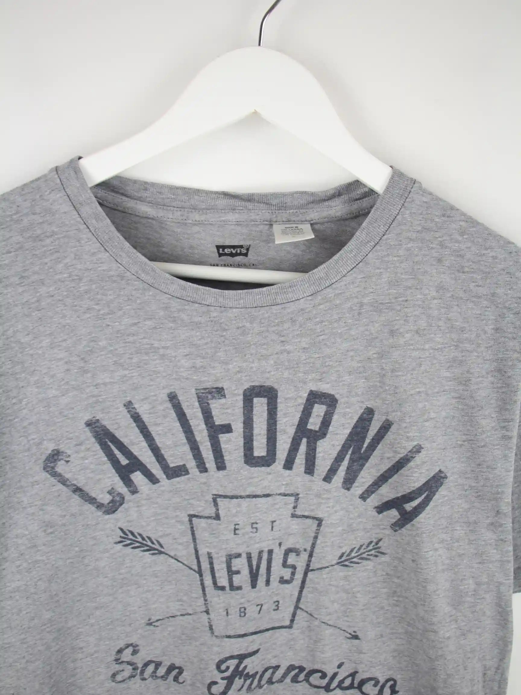 T-Shirt vom Label Levi's in Größe M. Es ist aus einer Baumwollmischung produziert und in Grau vorrätig. Mit chiquem California Print.