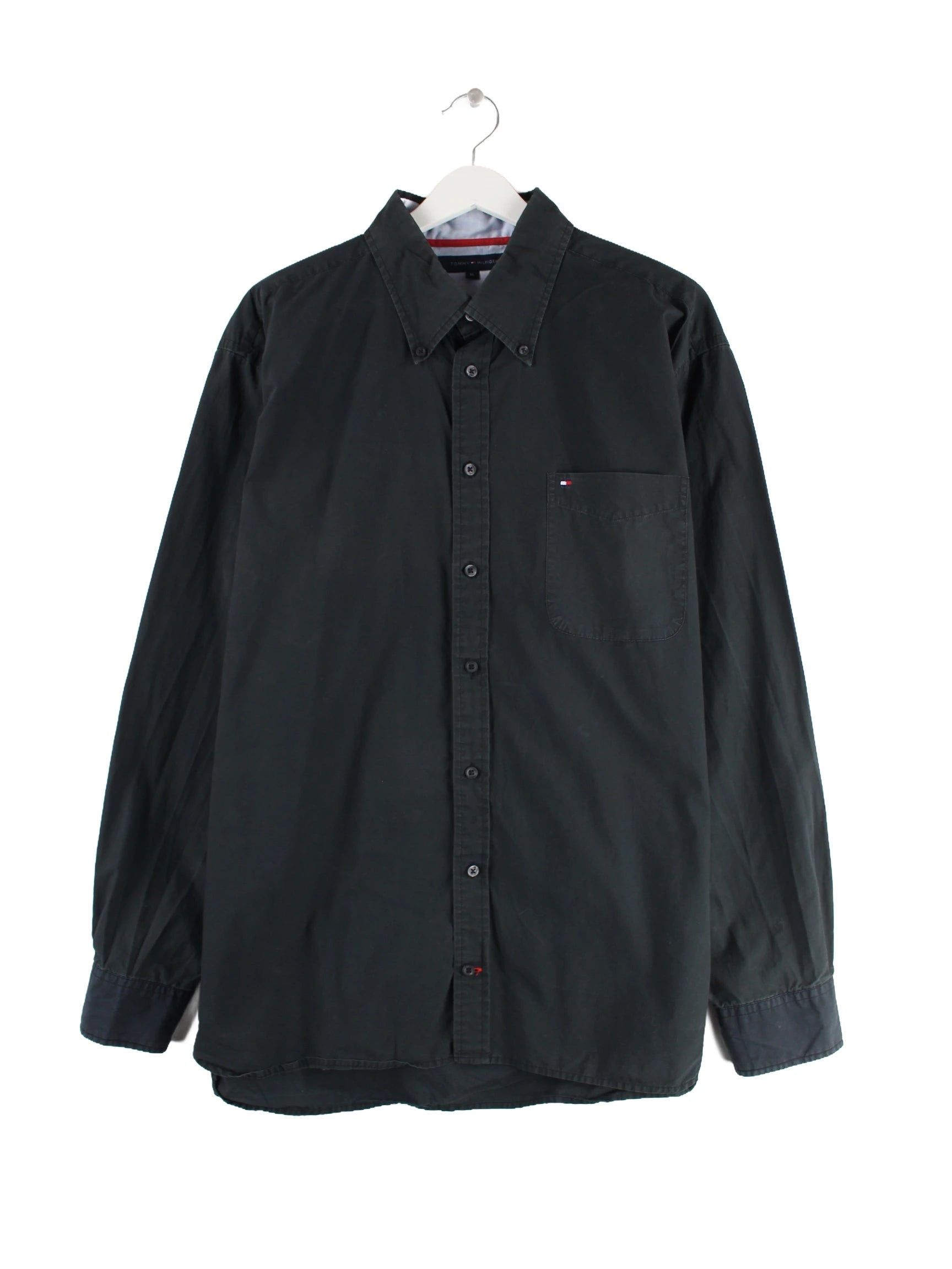 Hemd von Tommy Hilfiger in Größe XL. Es ist aus Baumwolle und in Schwarz auf Lager.
