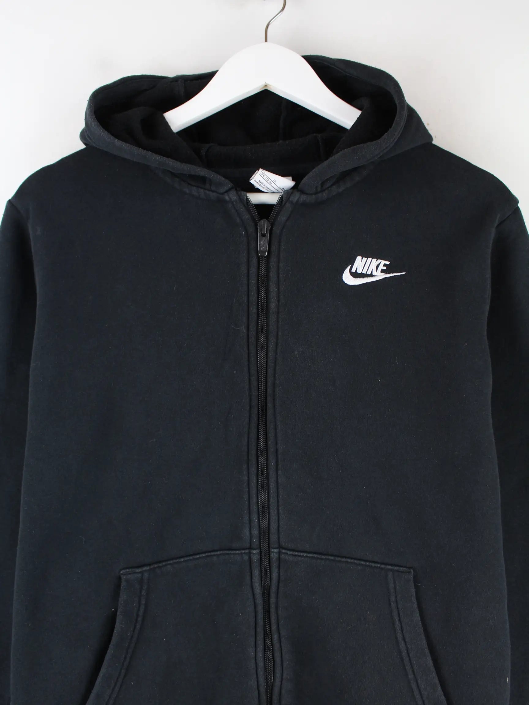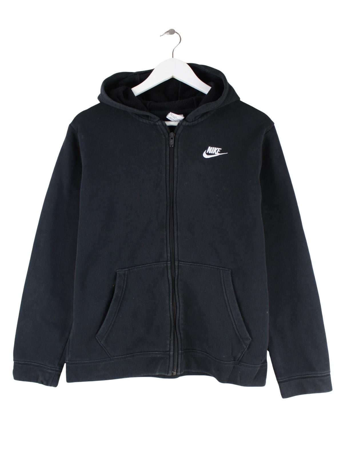 Hoodie von Nike mit Zip in Größe XL. Er ist aus einer Baumwollmischung gemacht und in Schwarz vorrätig.