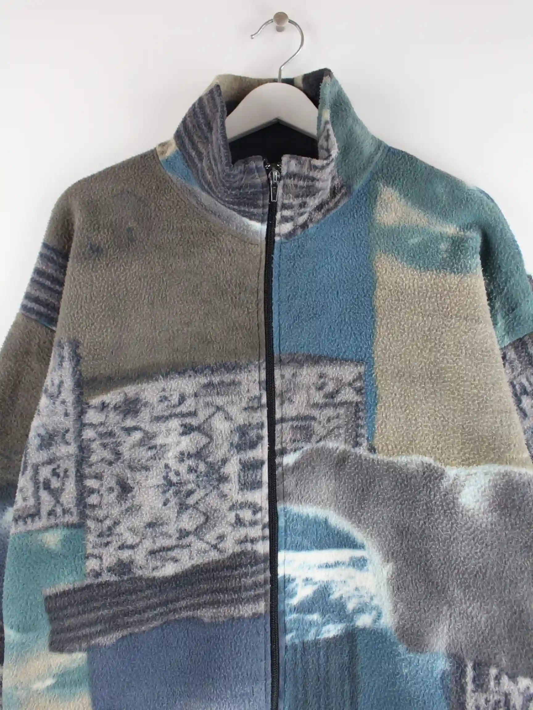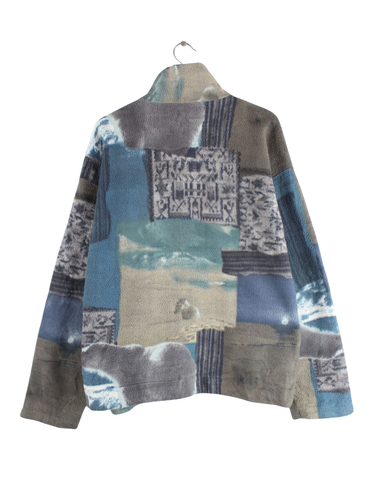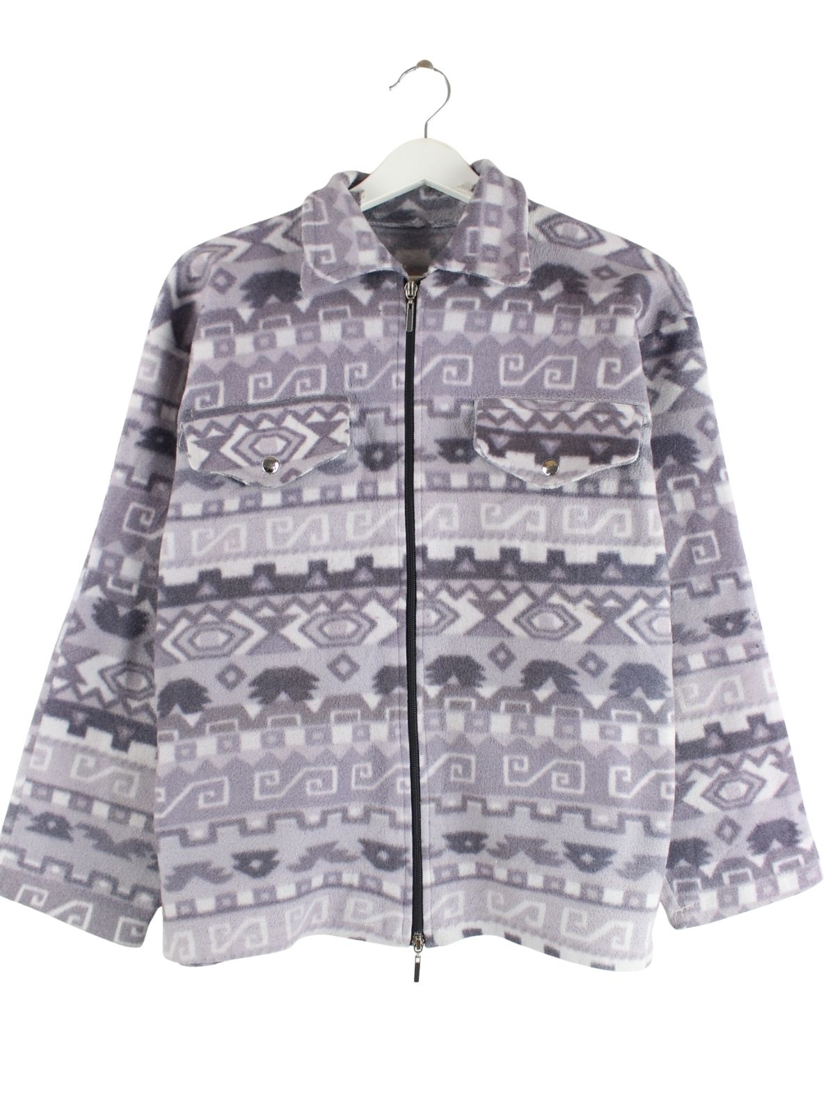 Vintage Crazy Pattern Fleece Jacke Grau XS