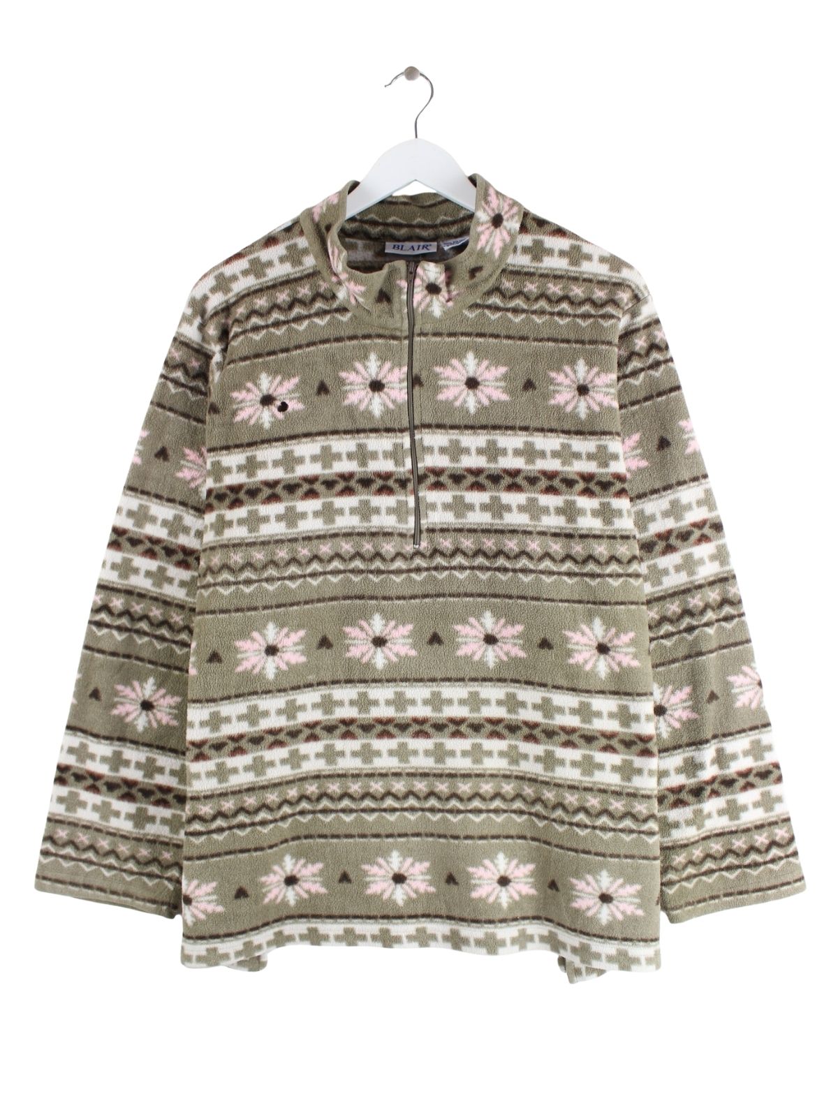 Vintage Crazy Pattern Half Zip Fleece Jacke Blau XXL