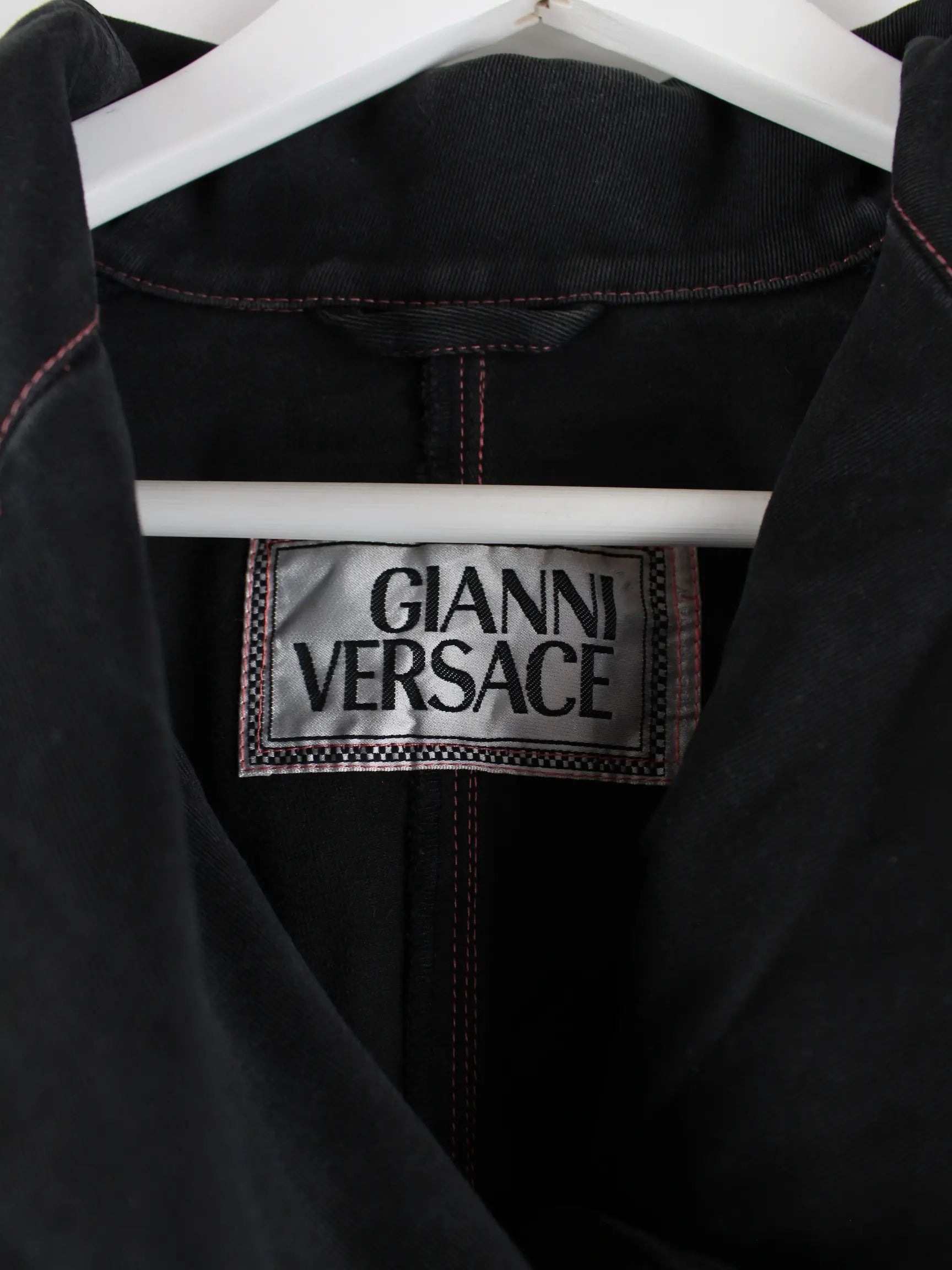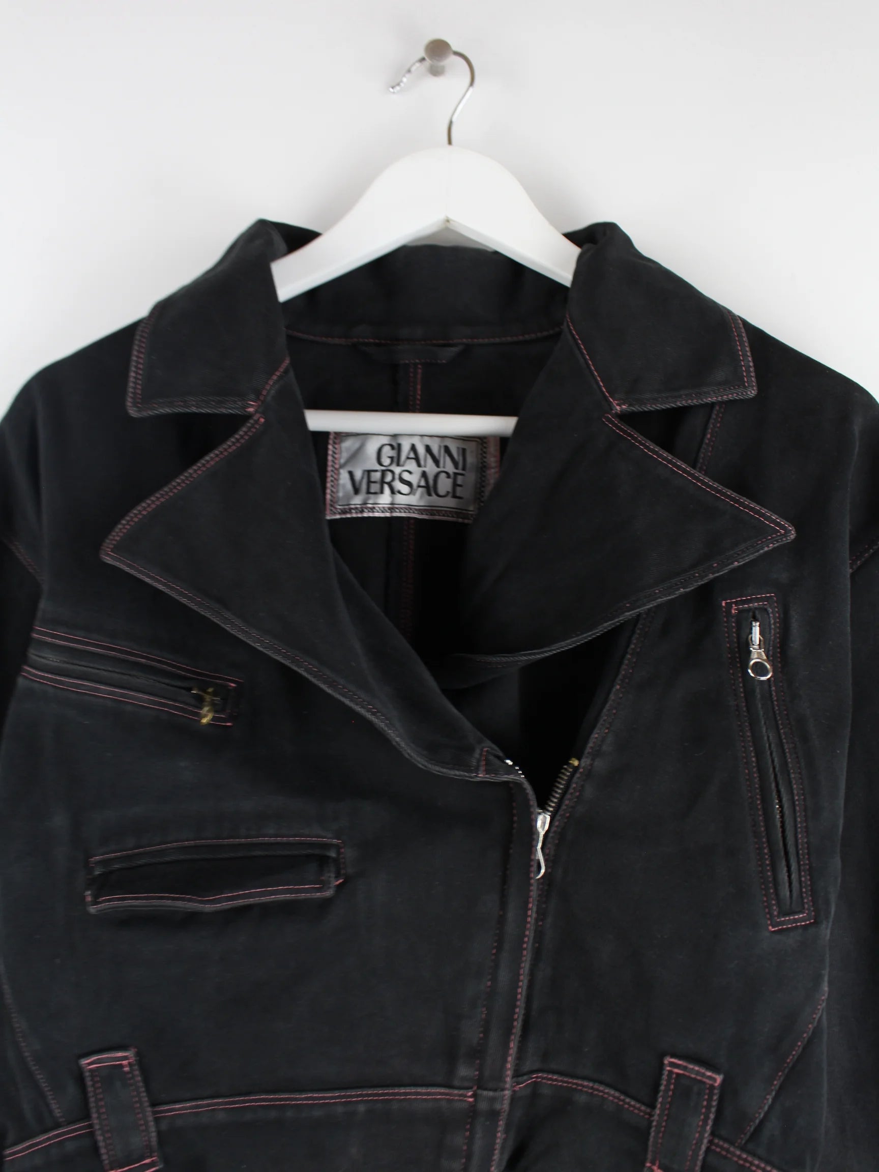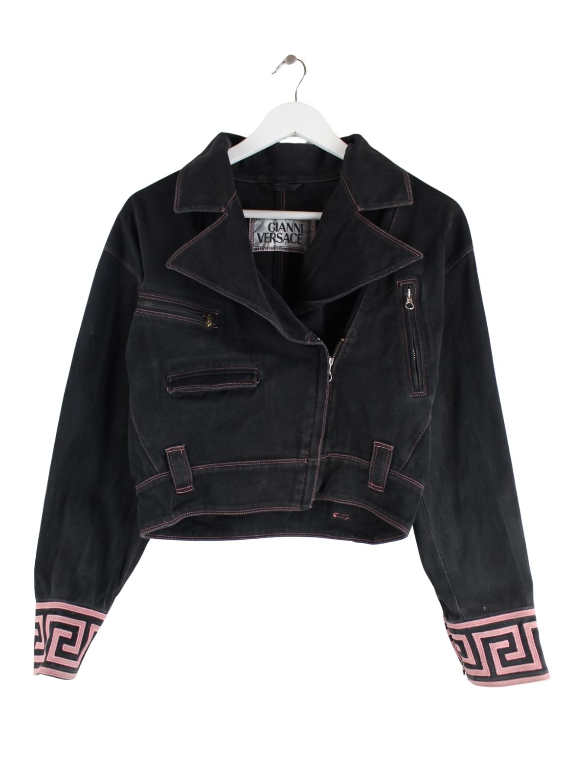 Gianni Versace Damen 90s Vintage Crop Jeans Jacke Schwarz S