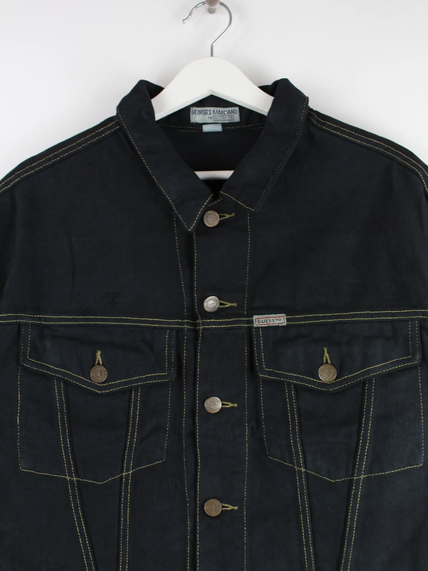 Guess Damen 90s Vintage Jeans Jacke Schwarz L
