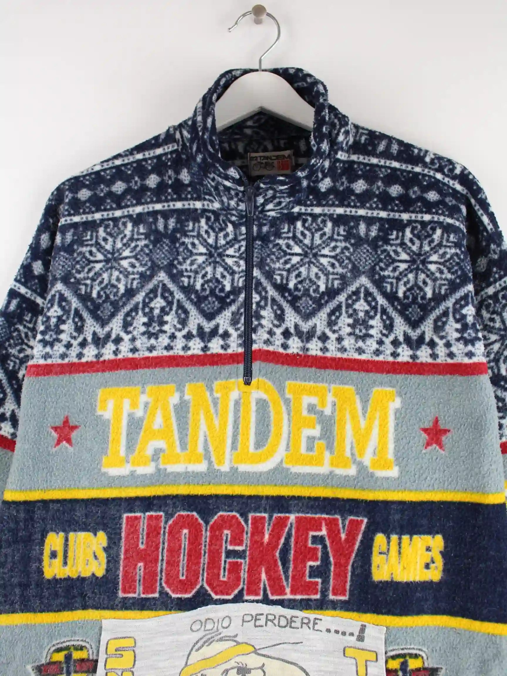 Vintage 90s Snoopy Hockey Print Half Zip Fleece Jacke Blau XXL