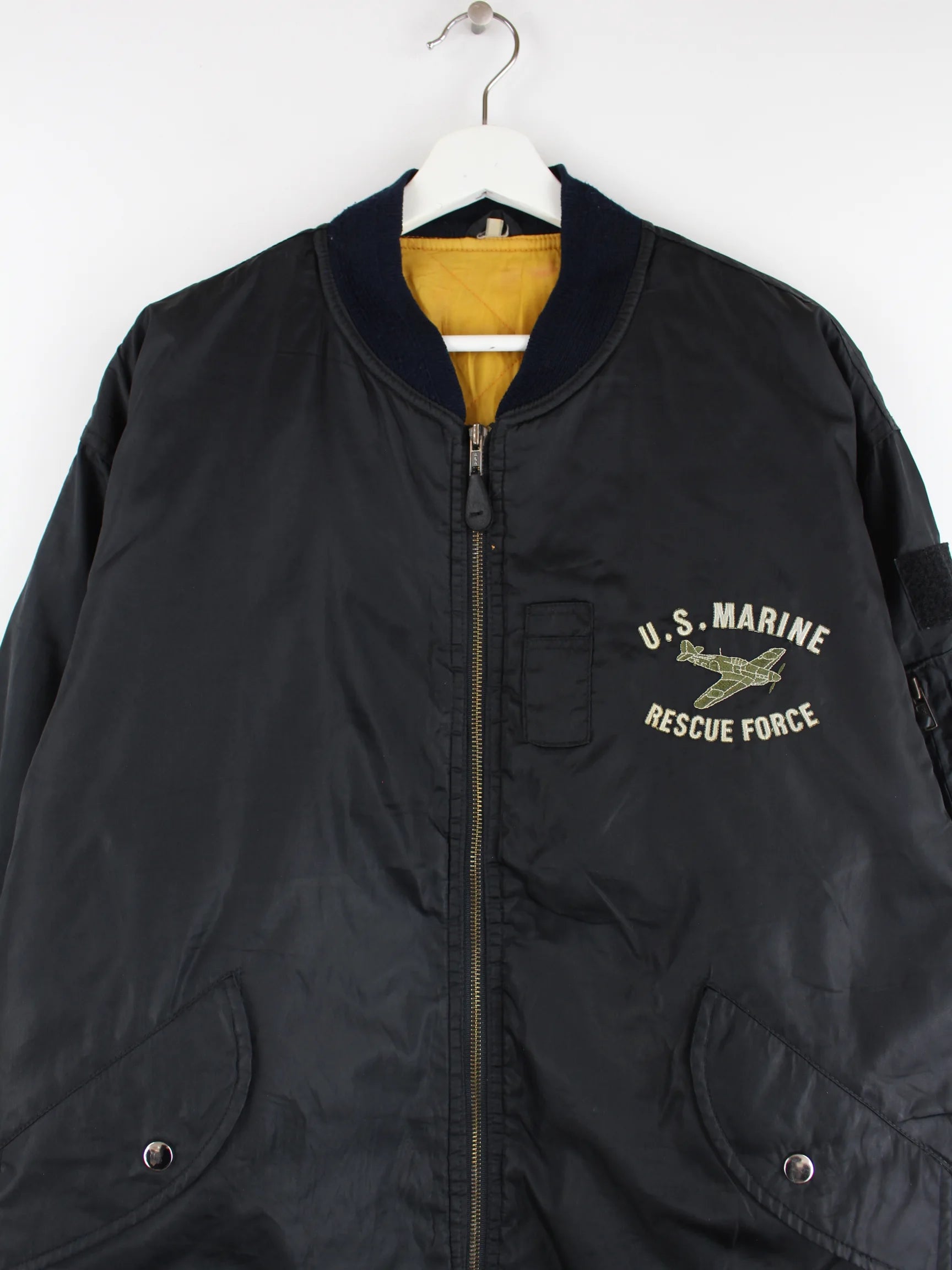 Vintage 00s US Marine Rescue Force Bomber Jacke Schwarz XL