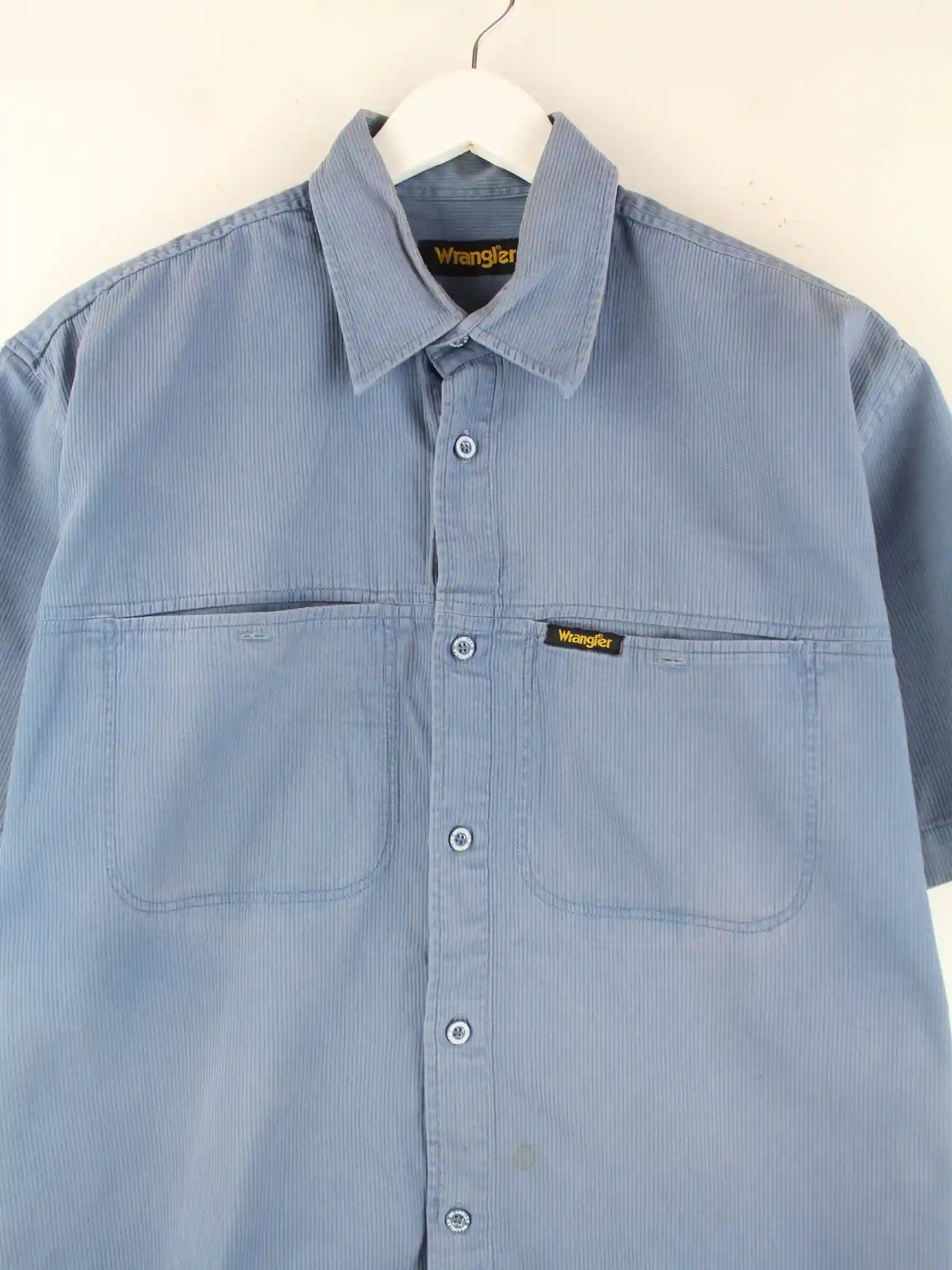 Blaues Freizeit Hemd der Marke Wrangler in Größe M. Es ist aus Baumwolle gemacht. Den Zustand würden wir als 'In Ordnung' bezeichnen (vergl. Bilder).
