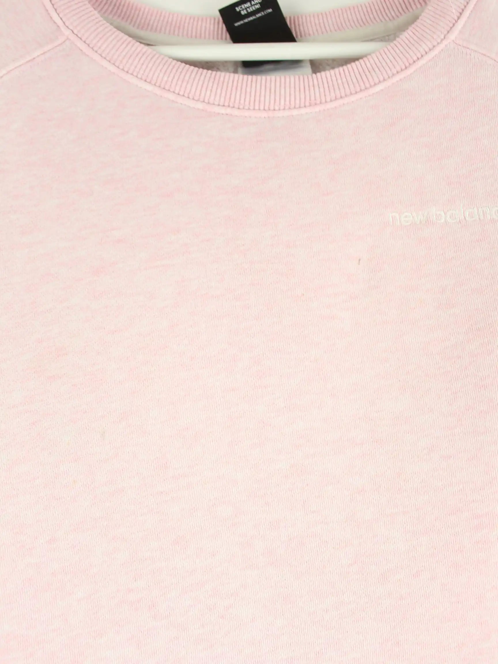 Rosafarbener Sweater des Labels New Balance in Größe S. Er ist aus einer Baumwollmischung produziert und in gutem Zustand in Stock.