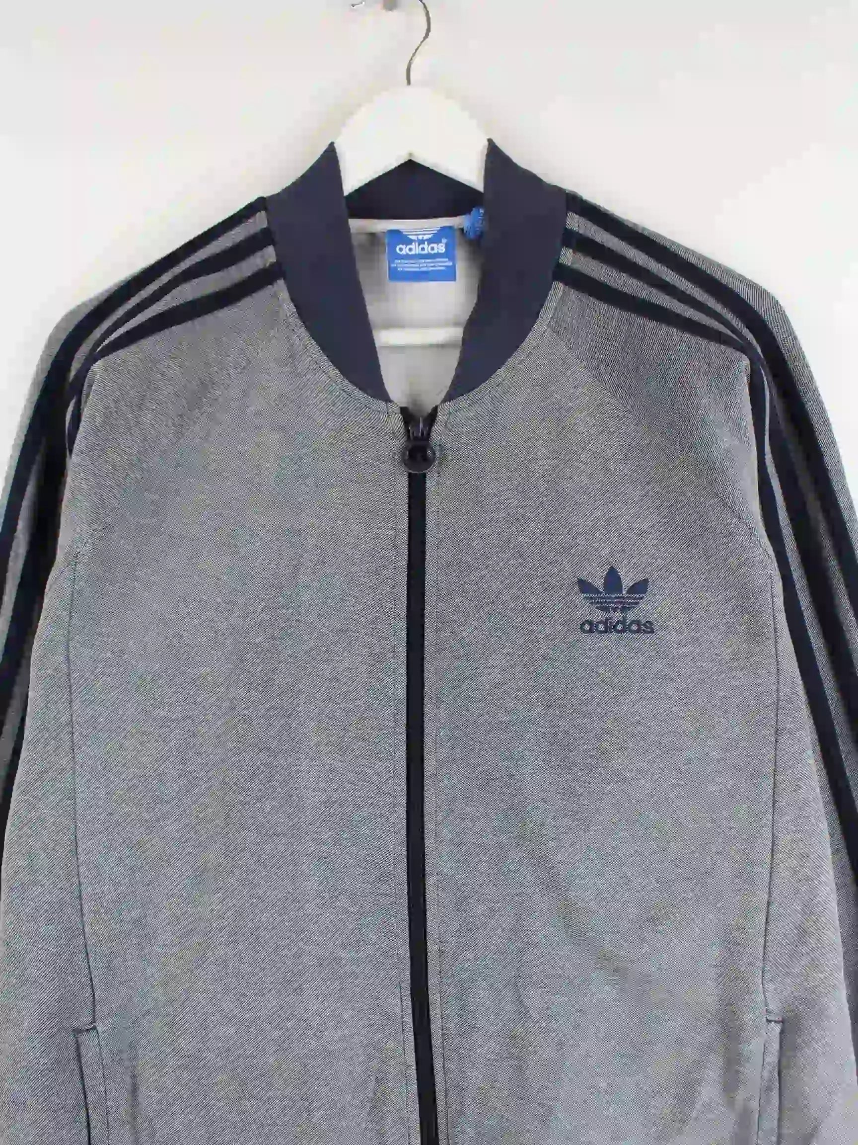 Sweatjacke des Labels Adidas in Größe L. Sie ist aus einer Baumwollmischung angefertigt und in Grau im Angebot.