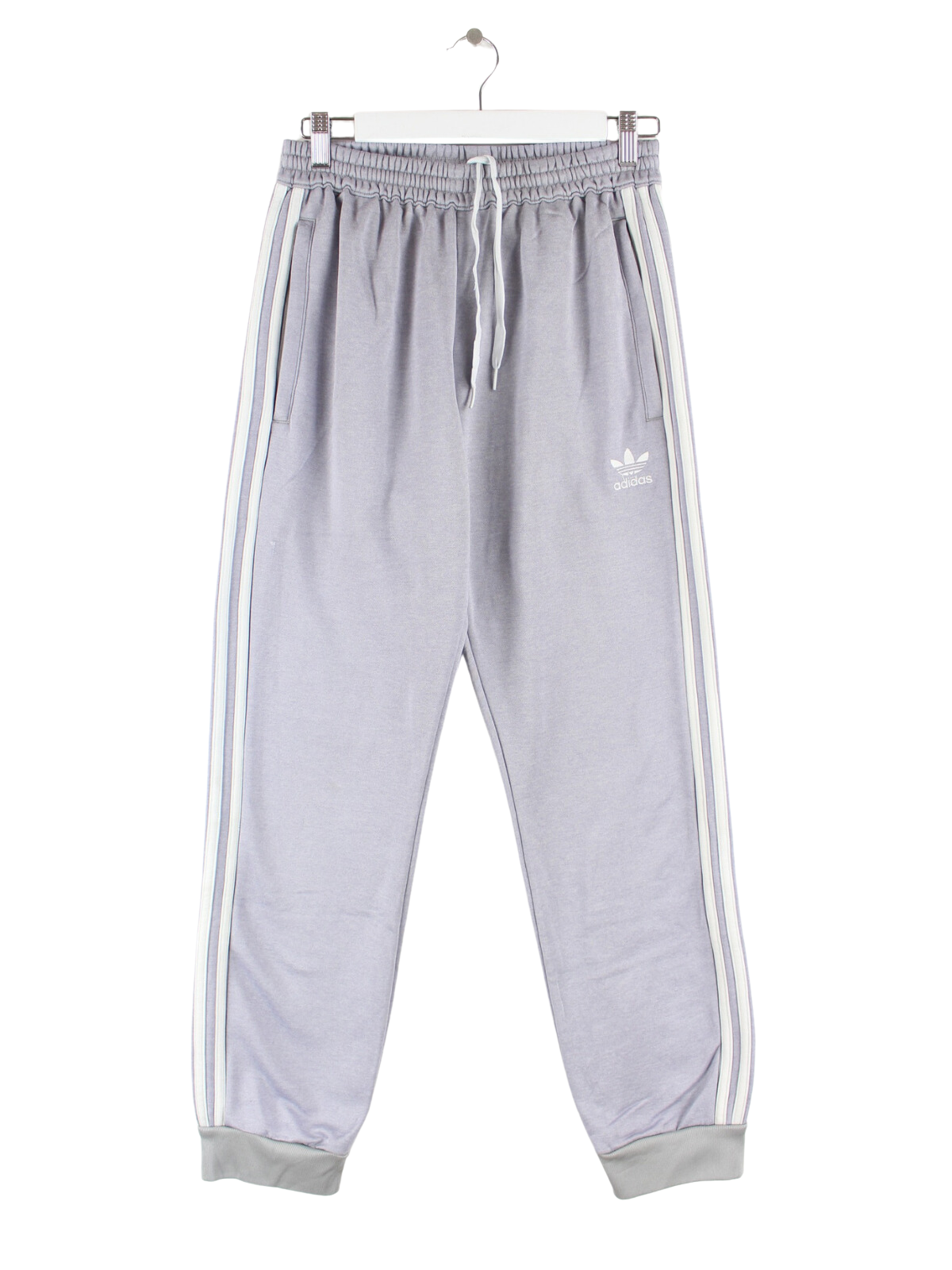 Track Pants vom Label Adidas in Größe M. Sie sind aus Synthetik und in Grau im Bestand.