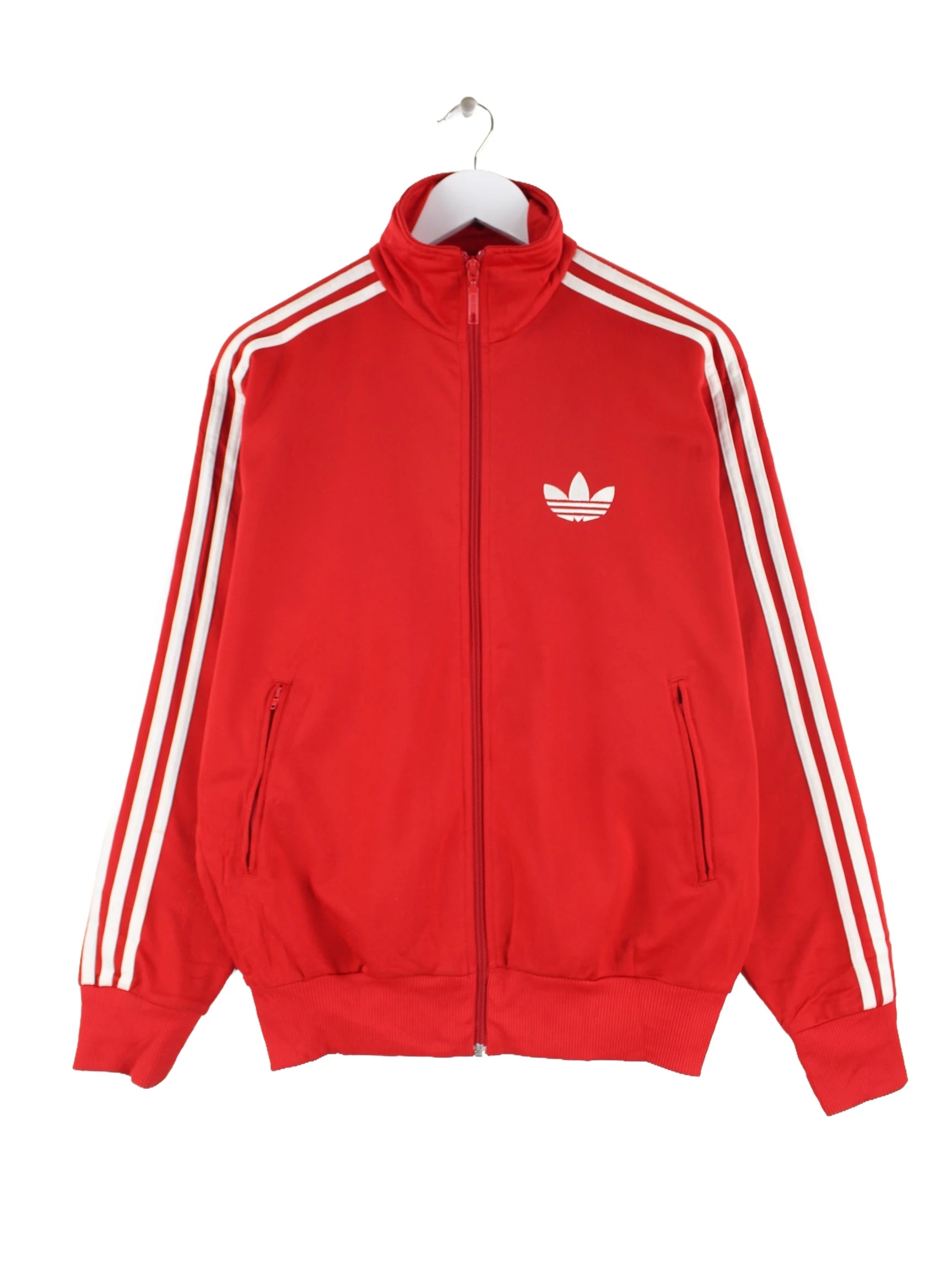 Trainingsjacke von Adidas in Größe S aus Anfang der 2000'er. Sie ist aus Synthetik hergestellt und in Rot bei uns vorrätig.