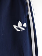 Track Pants vom Brand Adidas mit gesticktem Logo in Größe S. Sie sind aus Synthetik angefertigt und in Blau in Stock.