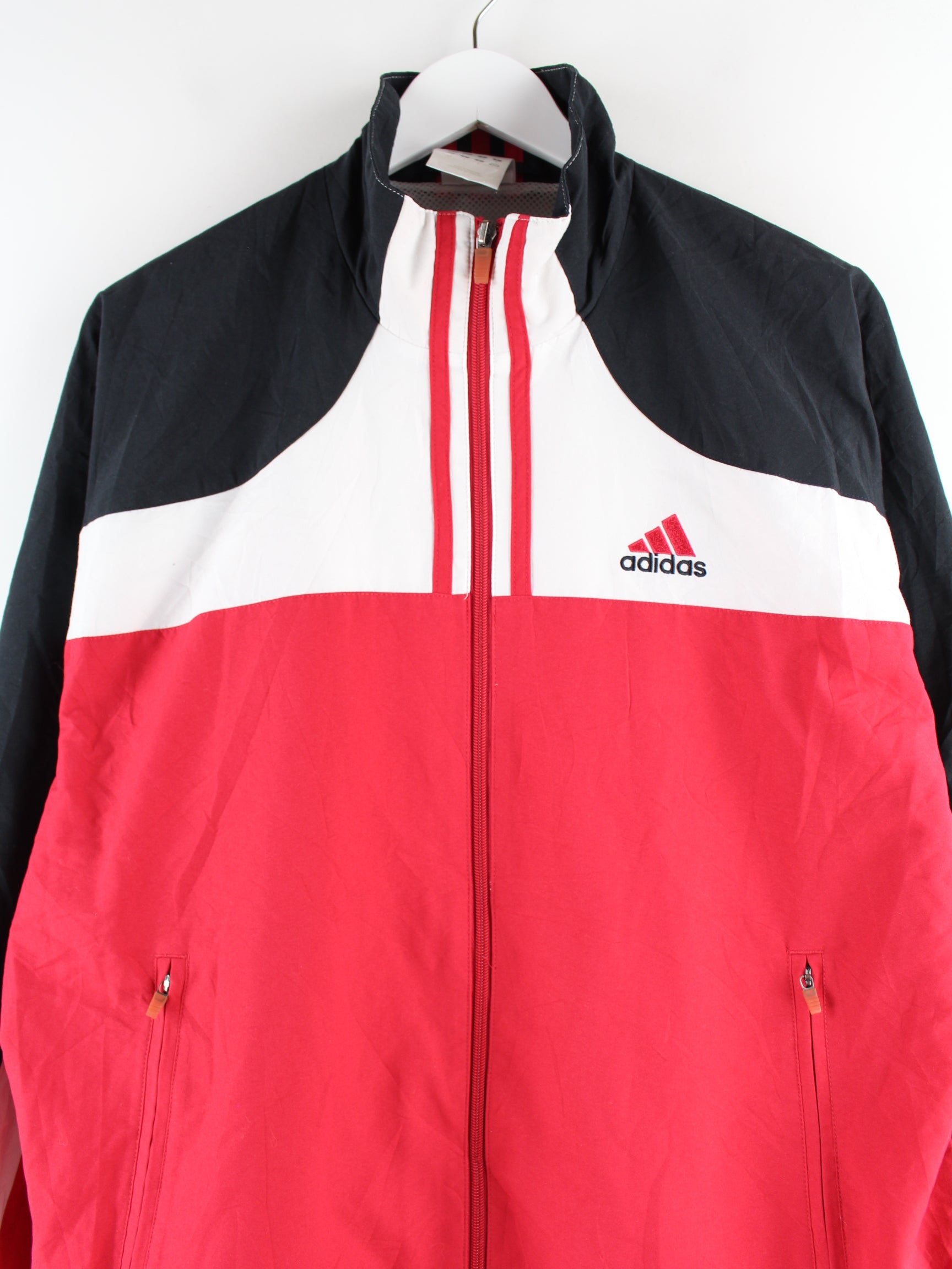Trainingsjacke vom Brand Adidas in Größe L aus Anfang der 2000'er. Sie ist aus Synthetik gefertigt und in Rot vorrätig.