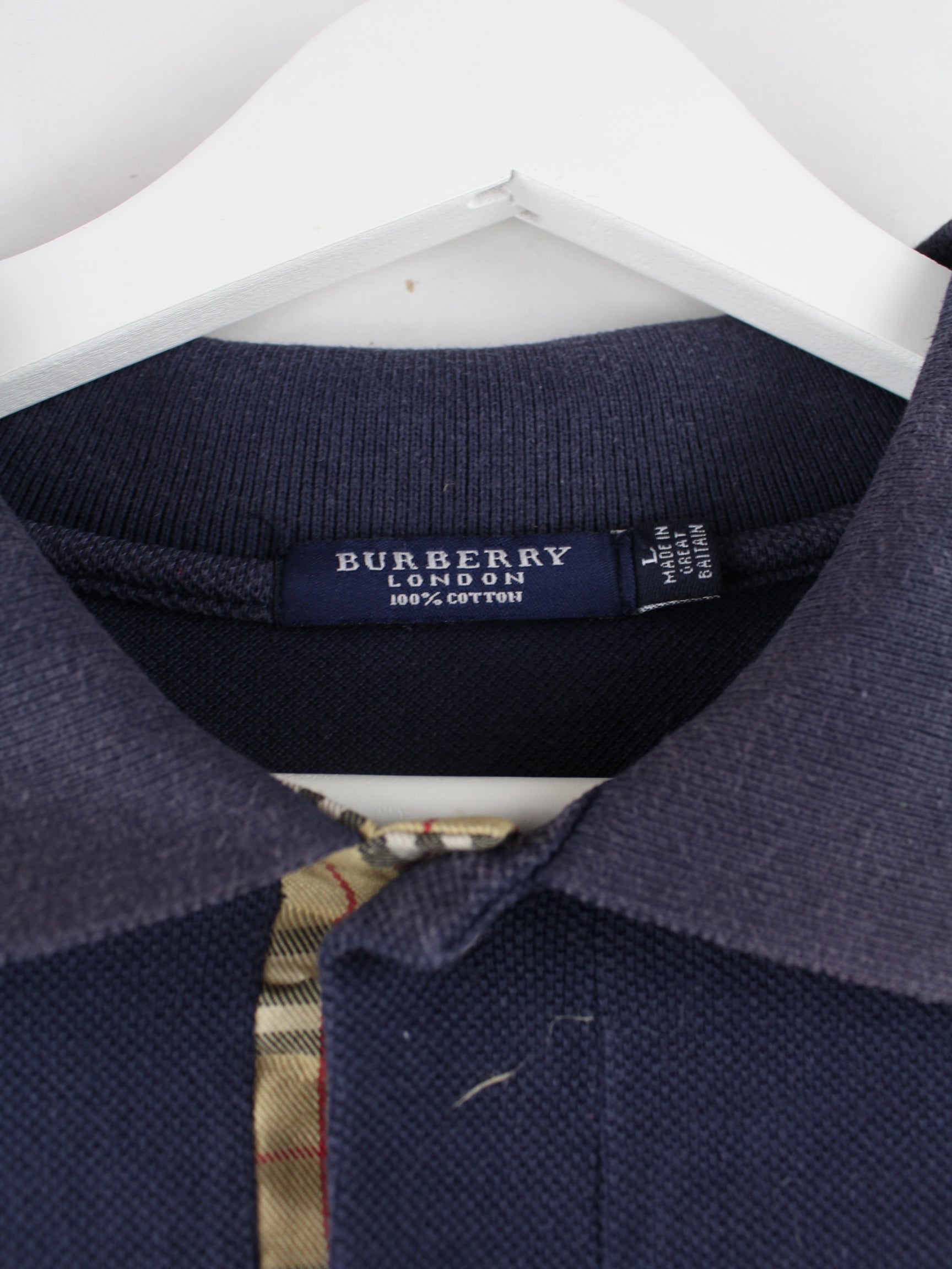 Blaues Poloshirt der Brand Burberry in Größe L. Es ist aus Baumwolle hergestellt und in gutem Zustand lieferbar.