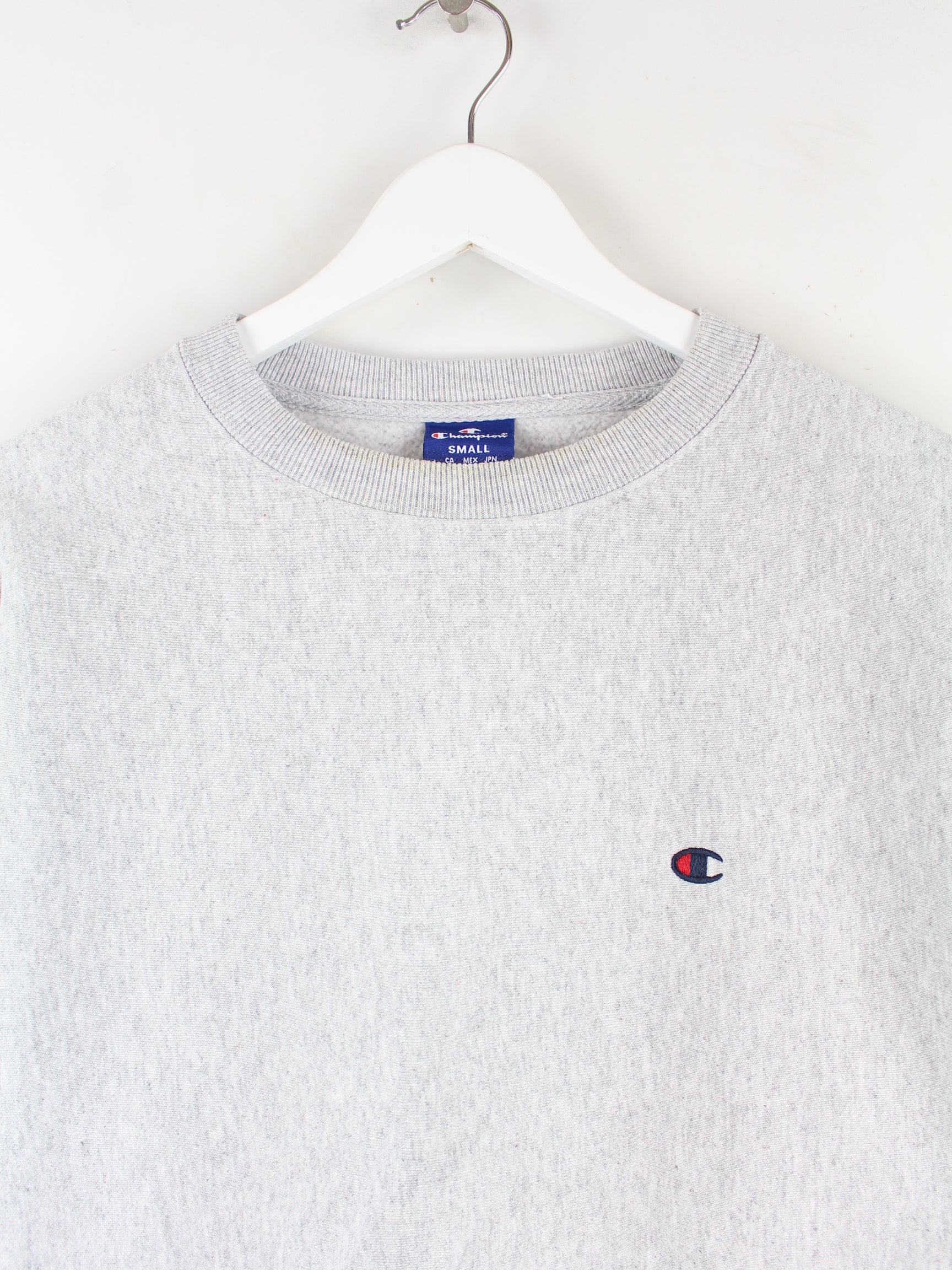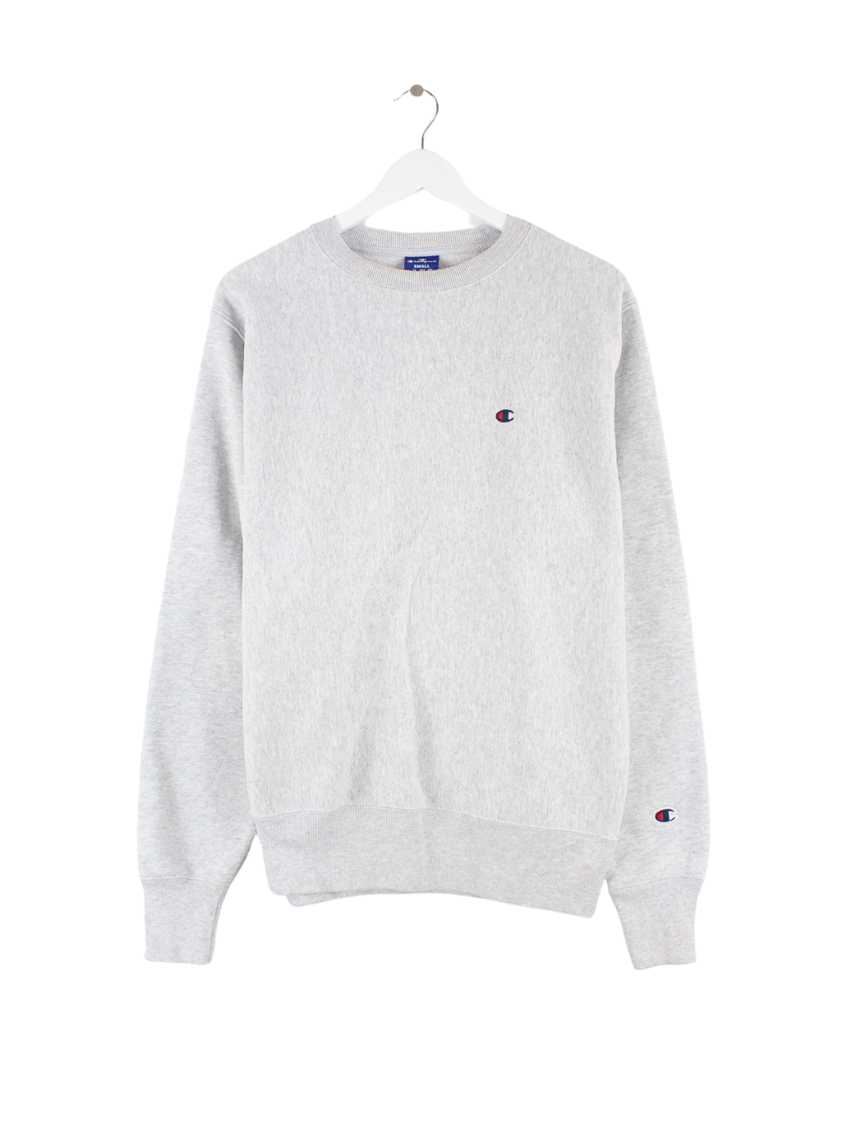 Grauer Sweater vom Label Champion in Größe S. Er ist aus einer Baumwollmischung gefertigt und in gutem Zustand zu bekommen.