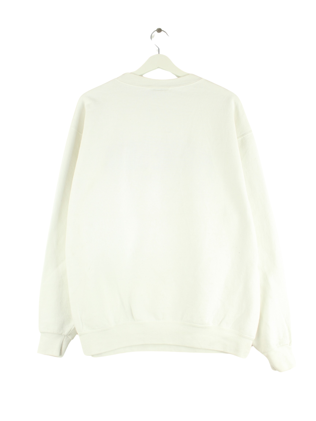 Weißer Sweater mit Stickereien vom Label Champion in Größe L. Er ist aus einer Baumwollmischung gemacht und in gutem Zustand bei uns zu bekommen.