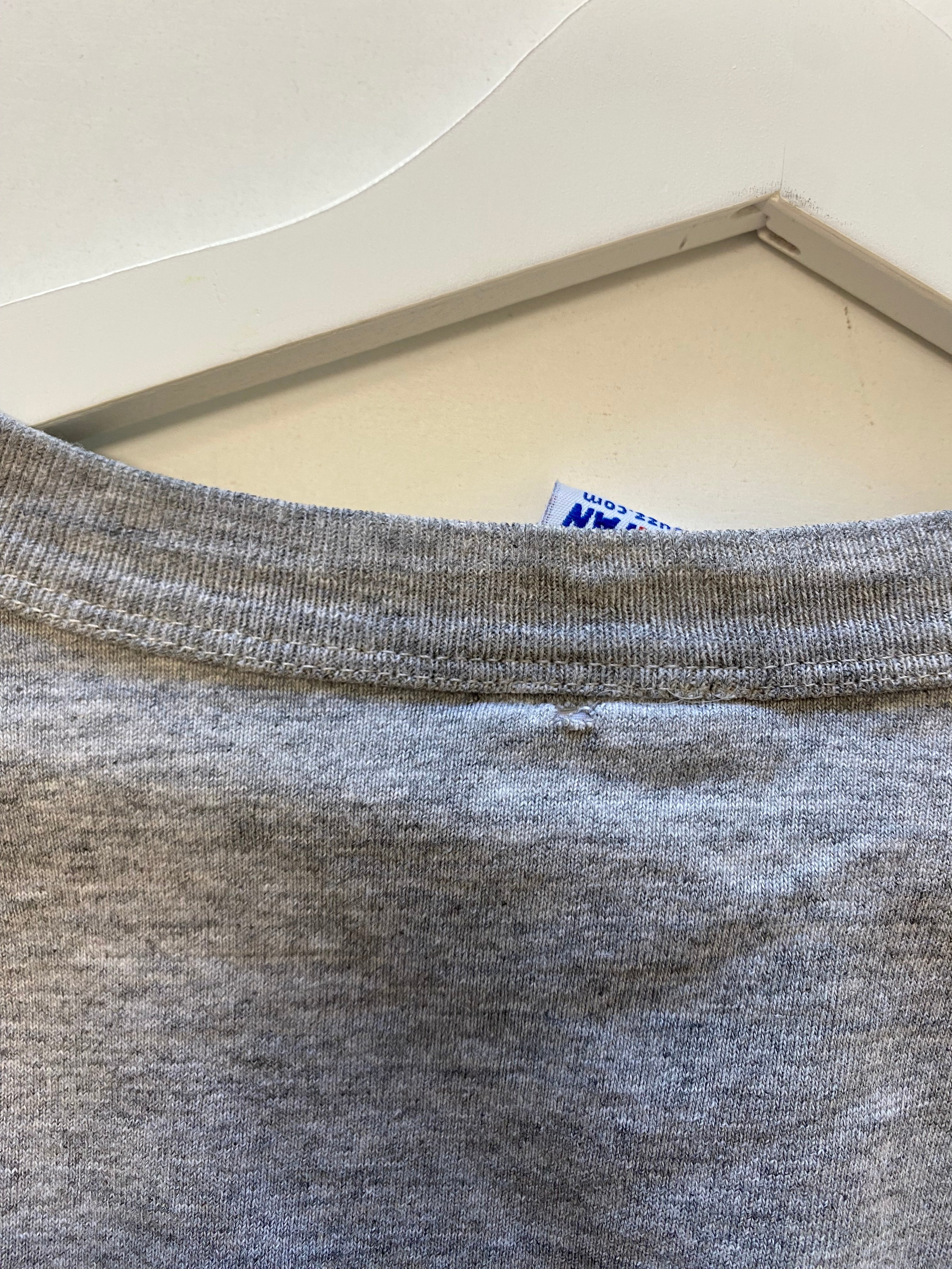 Graues T-Shirt aus dem Hause Champion in Größe XXL. Es ist aus Baumwolle hergestellt und in gutem Zustand im Angebot. Mit schickem Football Print.