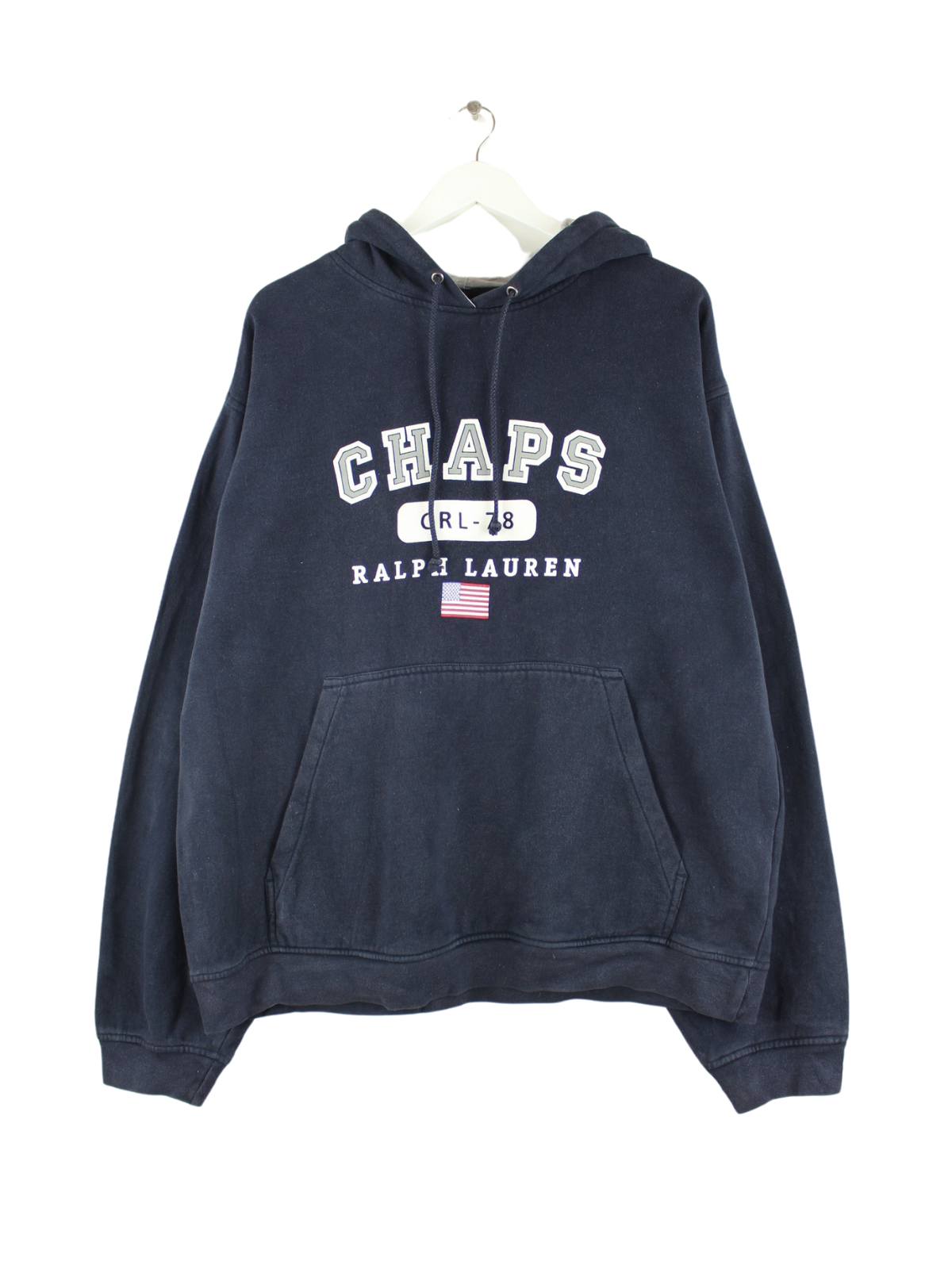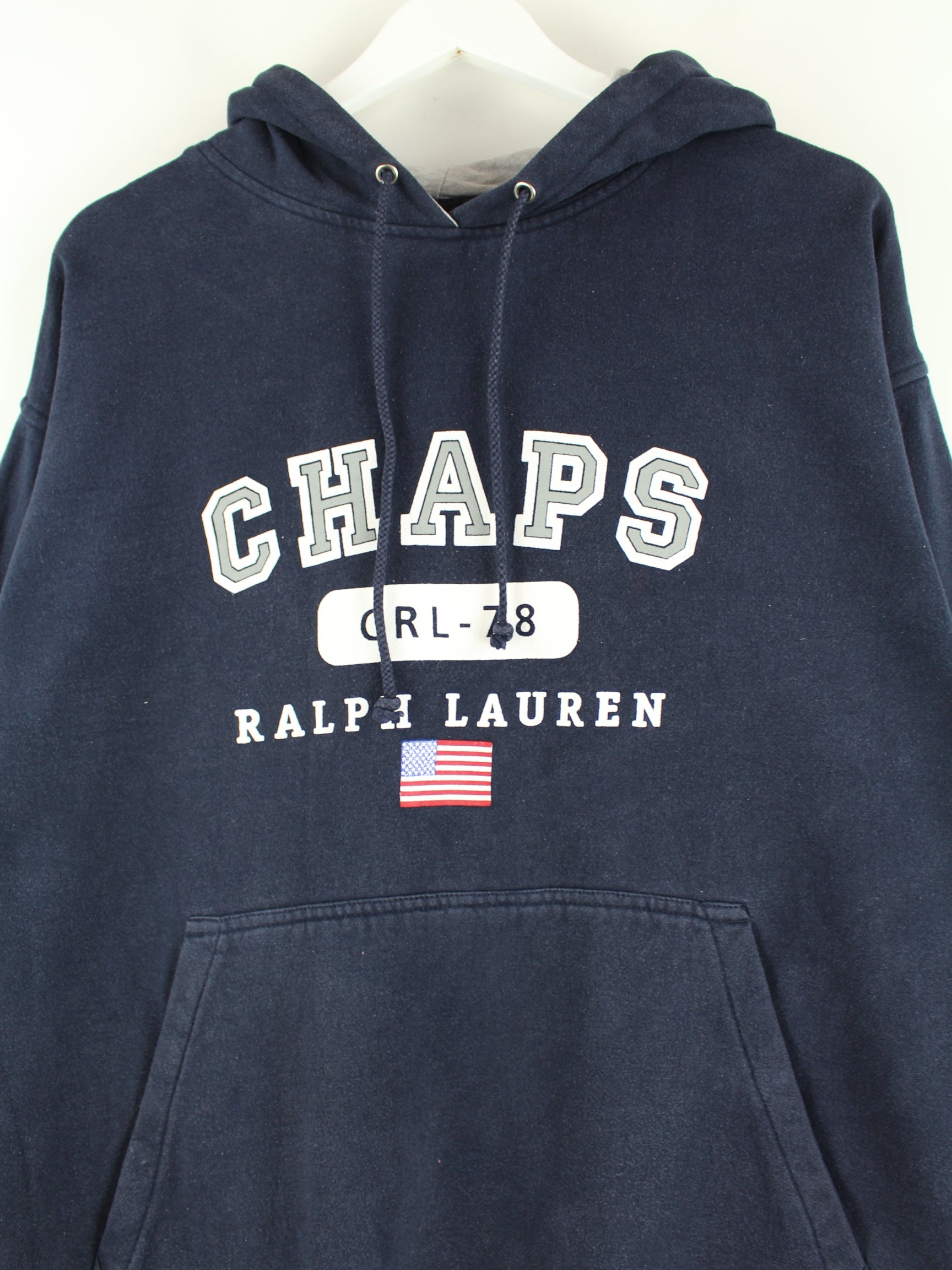 Hoodie vom Brand Chaps by Ralph Lauren in Größe XL aus Anfang der 2000'er. Er ist aus einer Baumwollmischung gefertigt und in Blau in Stock. Mit chiquem y2k Print.
