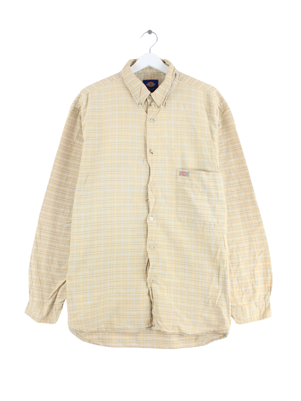 Freizeit Hemd des Labels Dickies in Größe XL. Es ist aus Baumwolle und in Beige vorrätig.