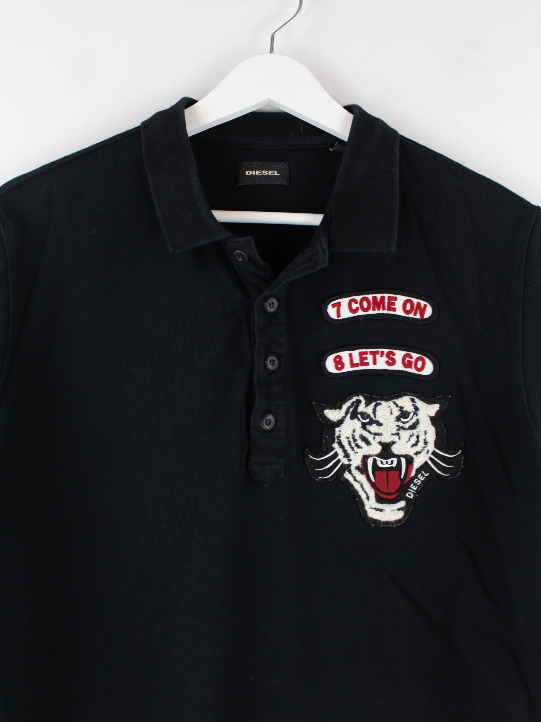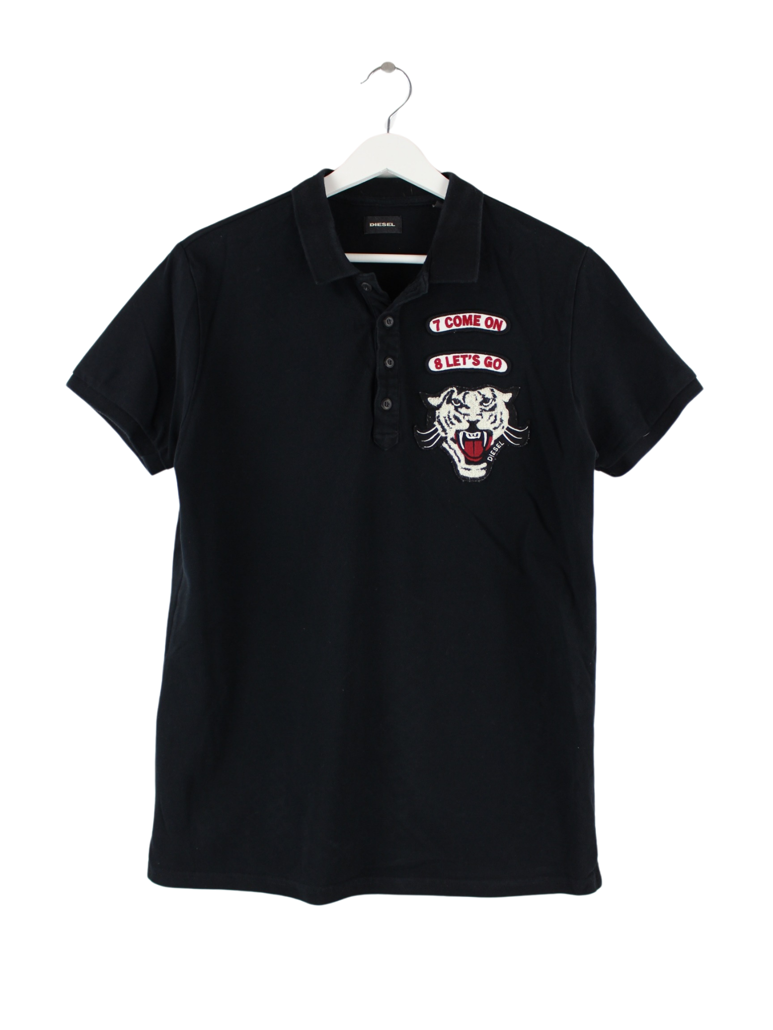 Schwarzes Poloshirt mit gesticktem Logo der Marke Diesel in Größe M. Es ist aus Baumwolle produziert und in sehr gutem Zustand zu bekommen.