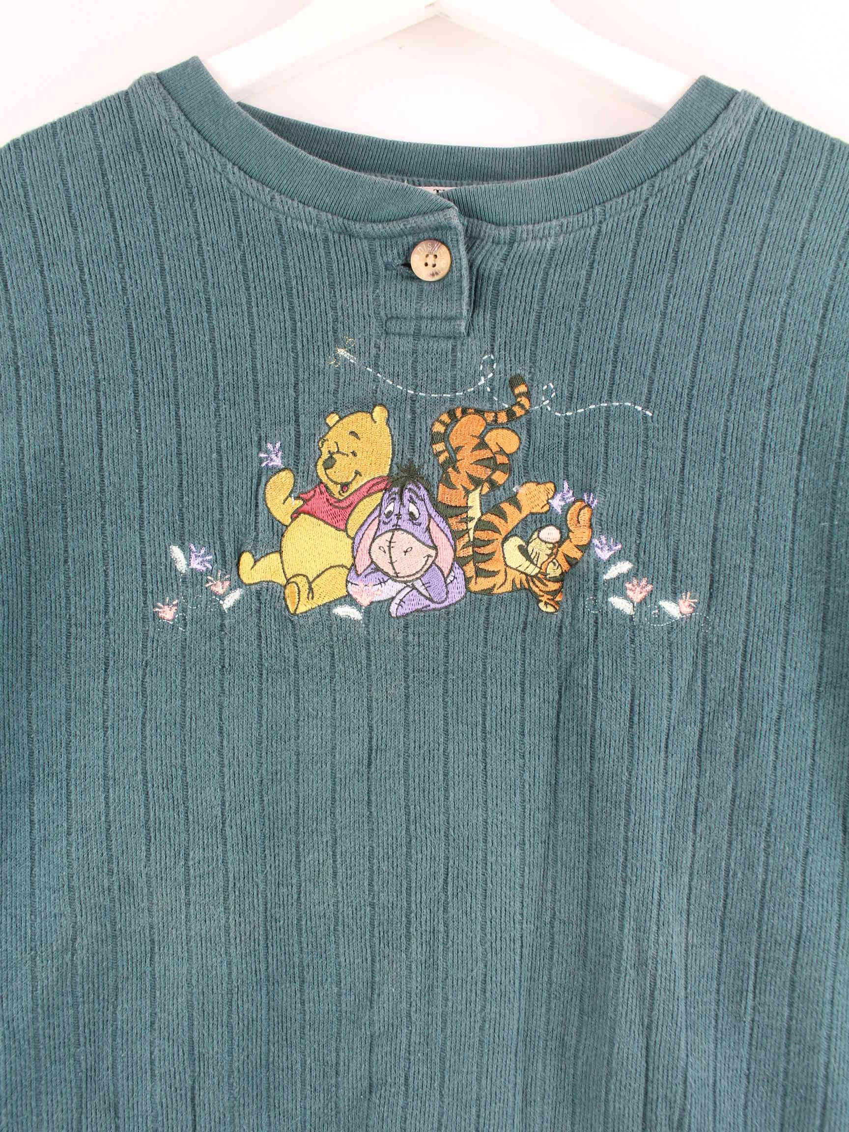 Pullover des Labels Disney mit Stickereien in Größe L. Er ist aus Baumwolle gefertigt und in Grün lieferbar.