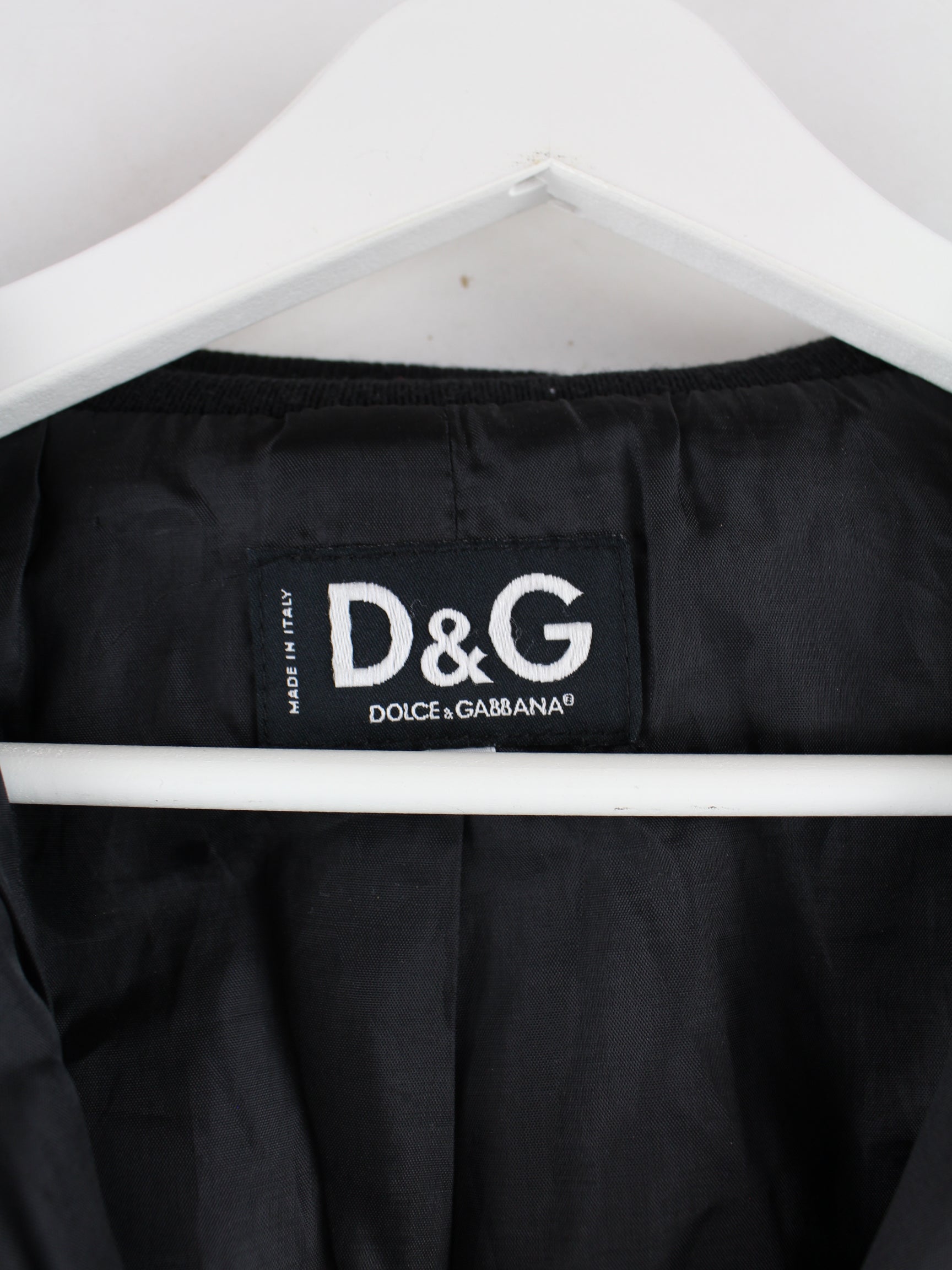 Schwarze Jacke des Labels Dolce & Gabbana in Größe L. Sie ist aus Synthetik und in sehr gutem Zustand bei uns zu bekommen.