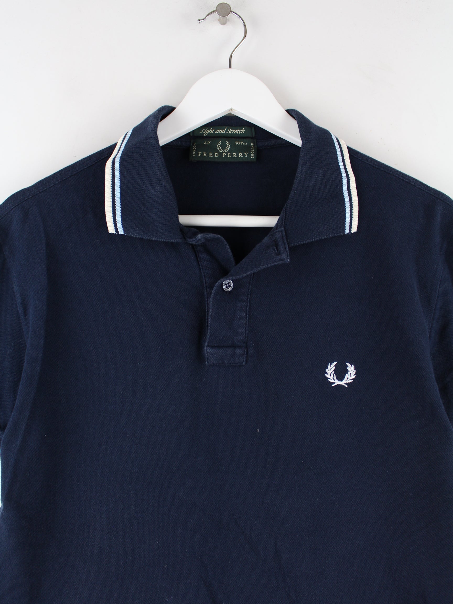 Poloshirt vom Brand Fred Perry in Größe M. Es ist aus Baumwolle produziert und in Blau auf Lager.