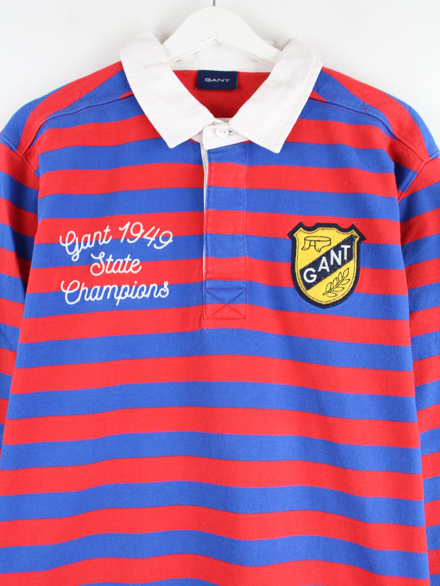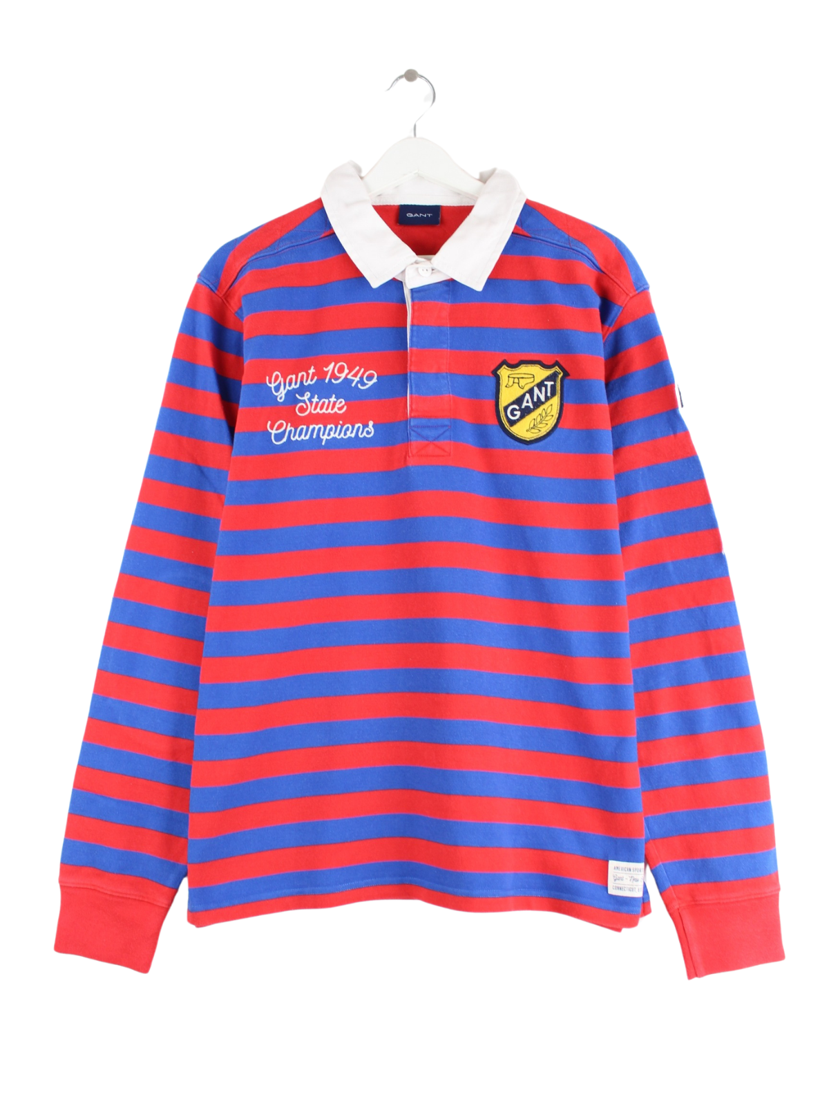 Poloshirt von Gant mit Stick in Größe XL. Es ist aus Baumwolle produziert und in Blau/Rot in Stock.