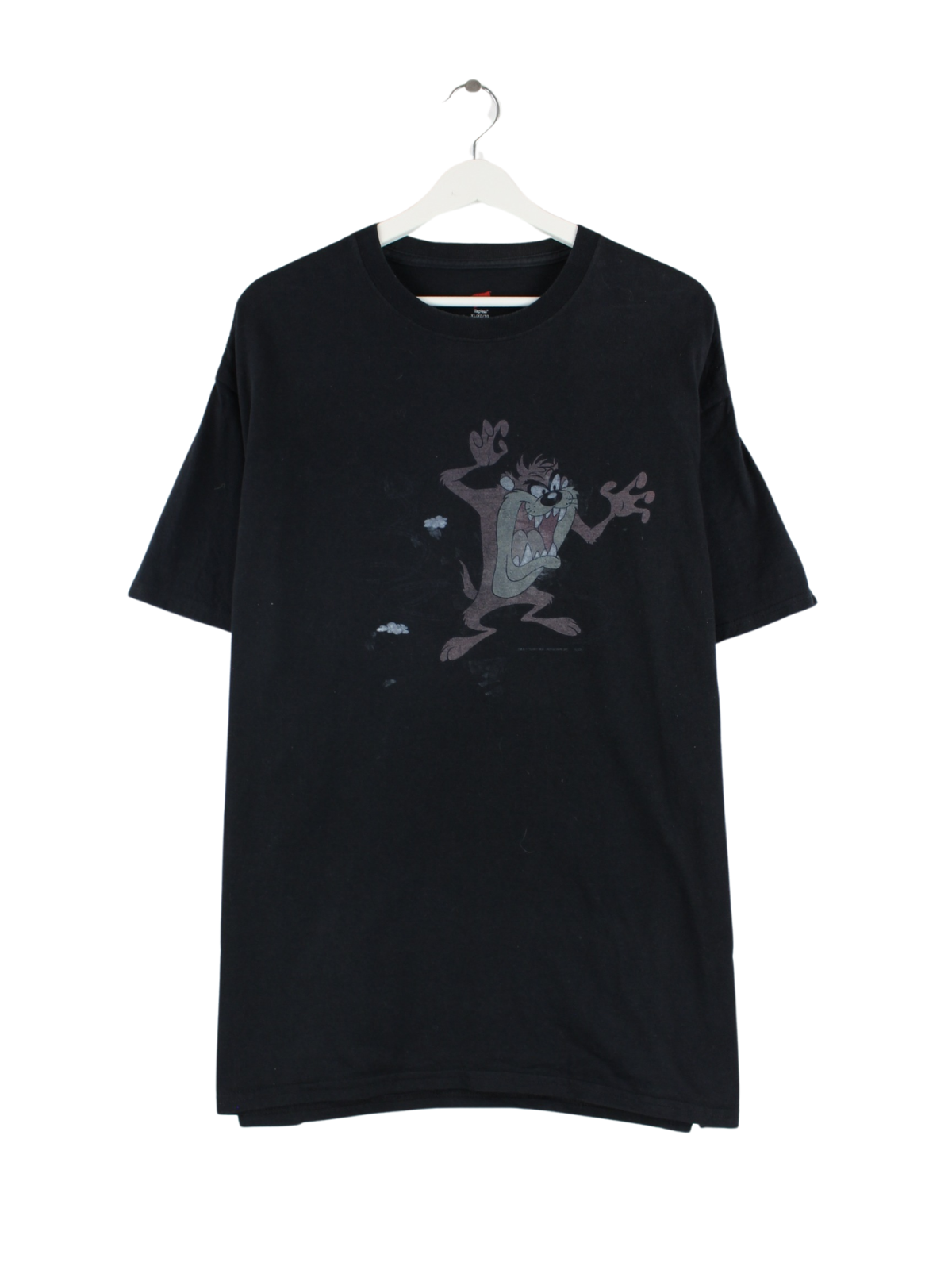 Schwarzes T-Shirt der Brand Hanes in Größe XL. Es ist aus Baumwolle und in sehr gutem Zustand auf Lager. Mit schönem Taz Print.