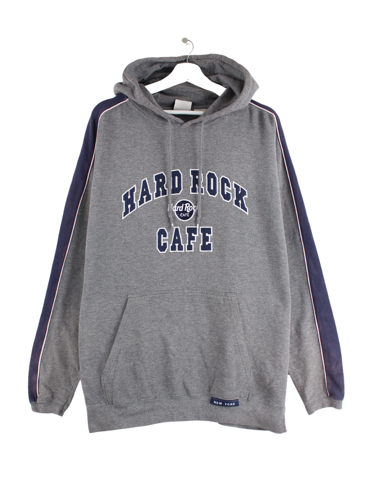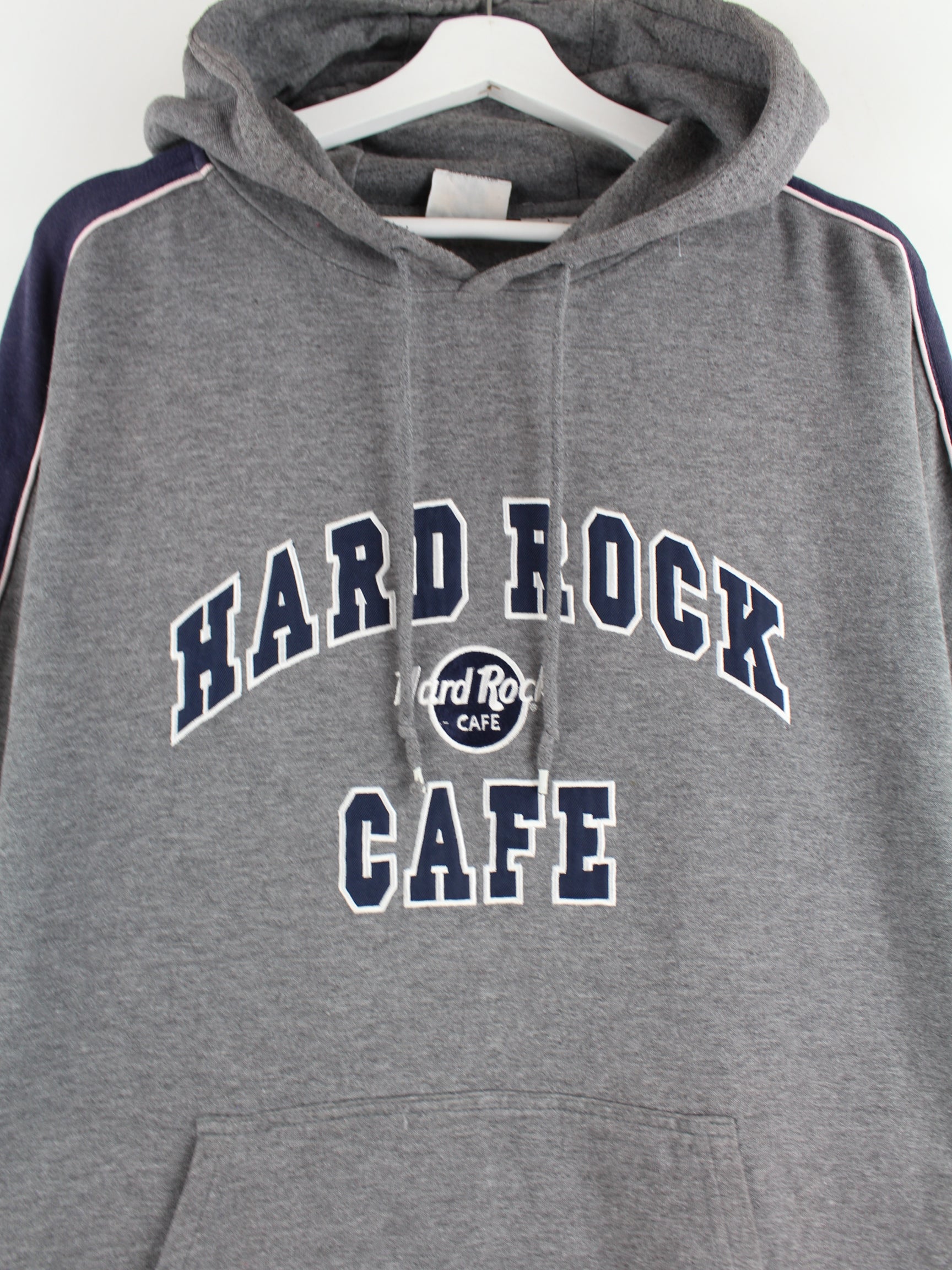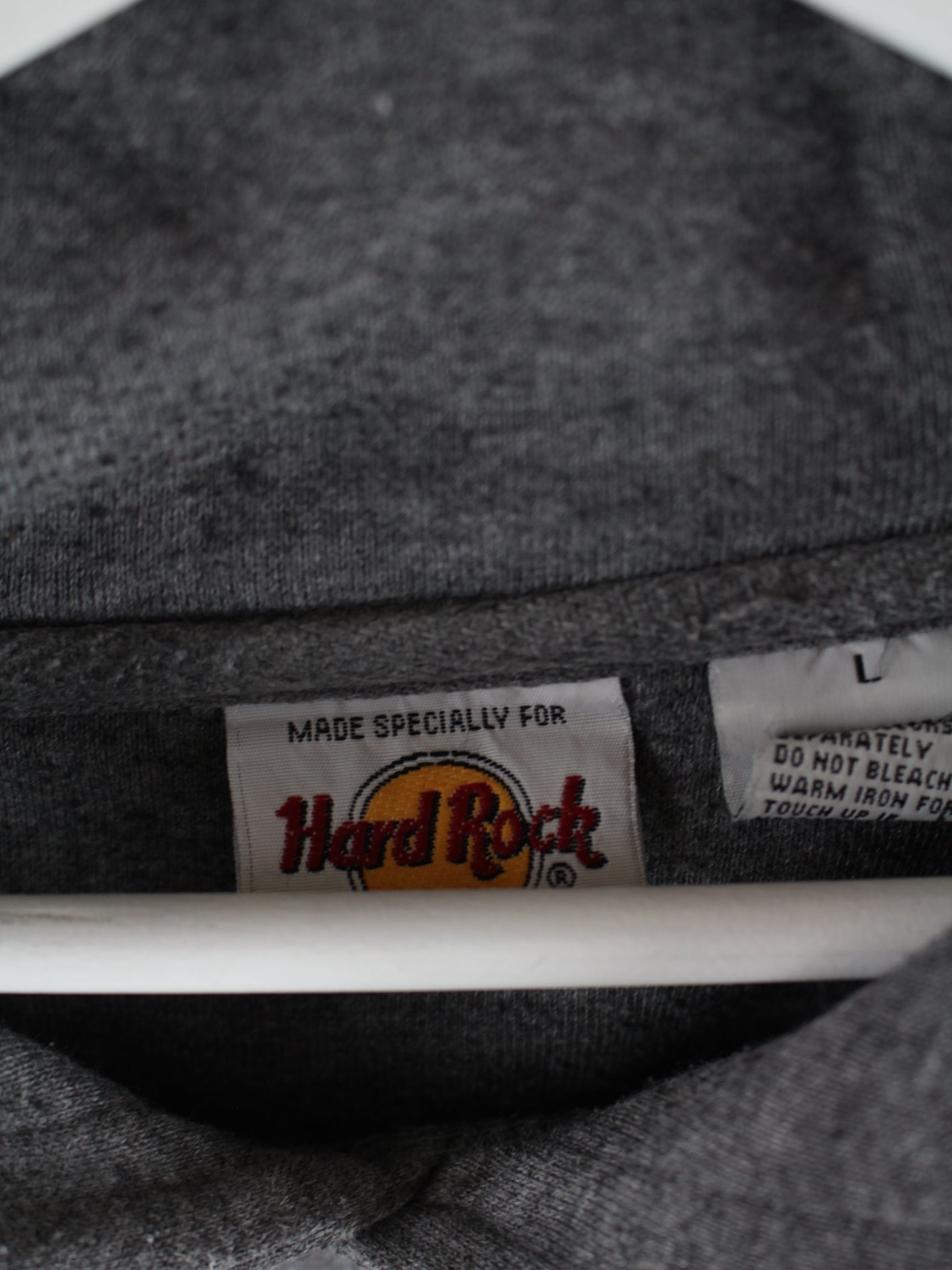 Hoodie vom Brand Hard Rock Cafe mit Stickereien in Größe L. Er ist aus einer Baumwollmischung produziert und in Grau bei uns vorrätig.