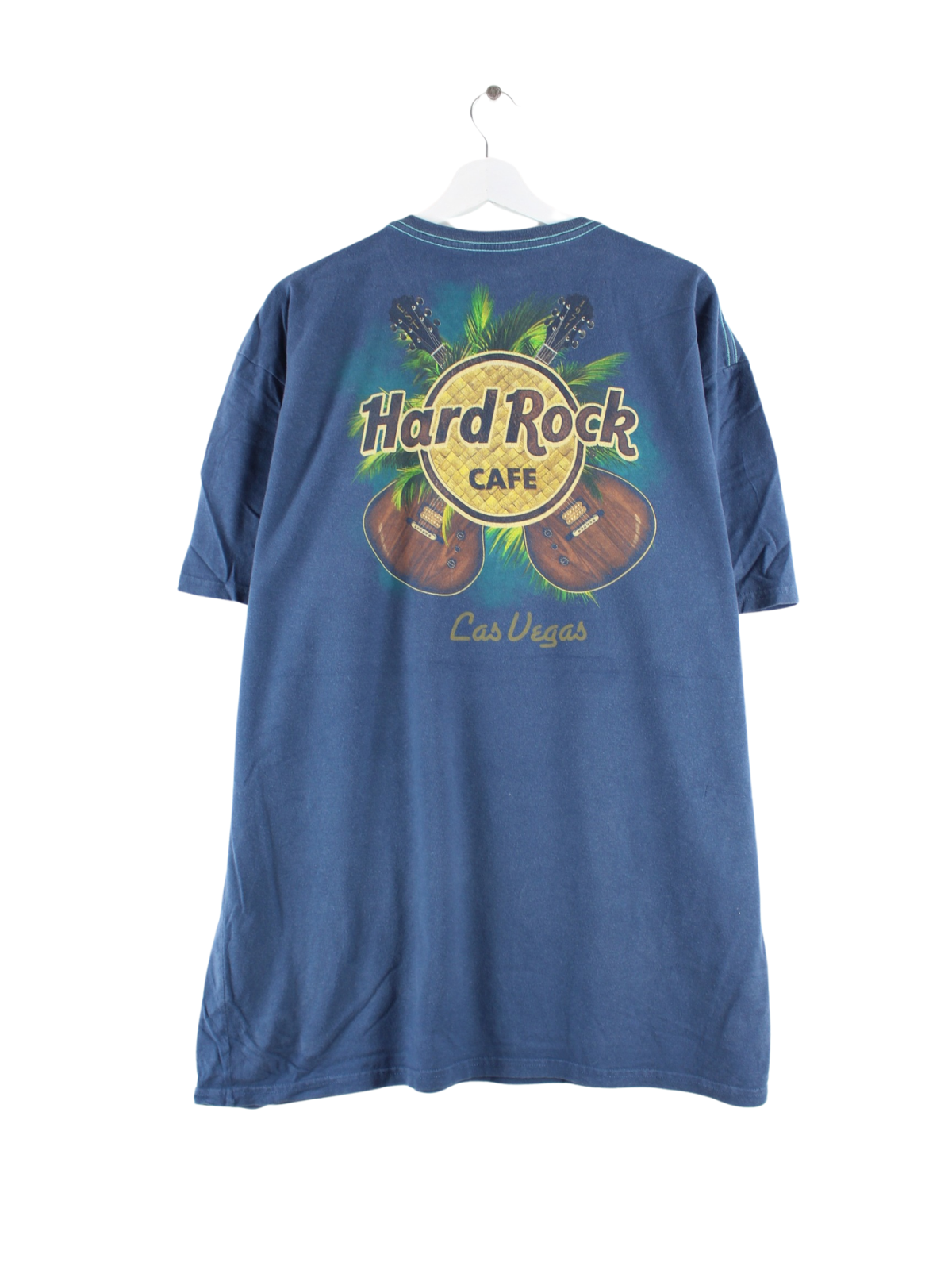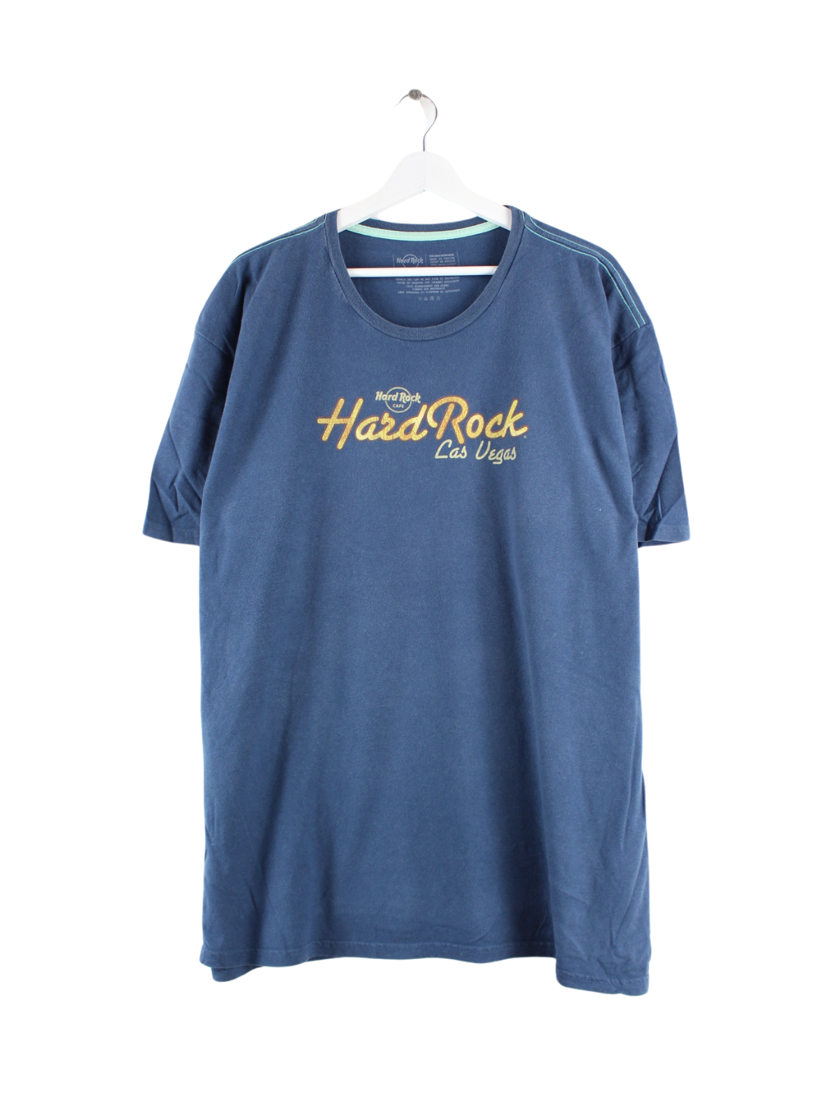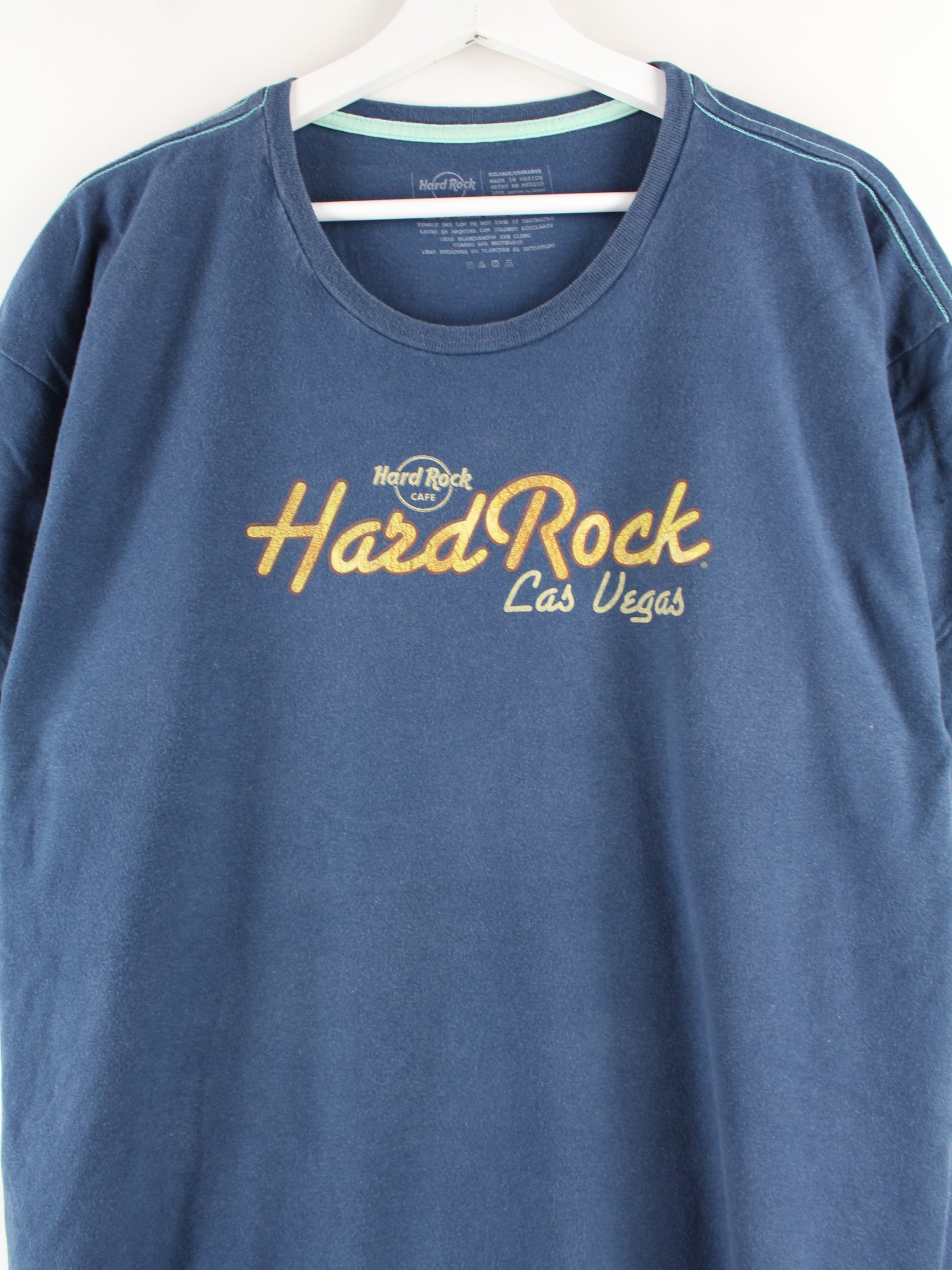 T-Shirt aus dem Hause Hard Rock Cafe in Größe XXL. Es ist aus Baumwolle hergestellt und in Blau lieferbar. Mit chiquem Vegas Print.
