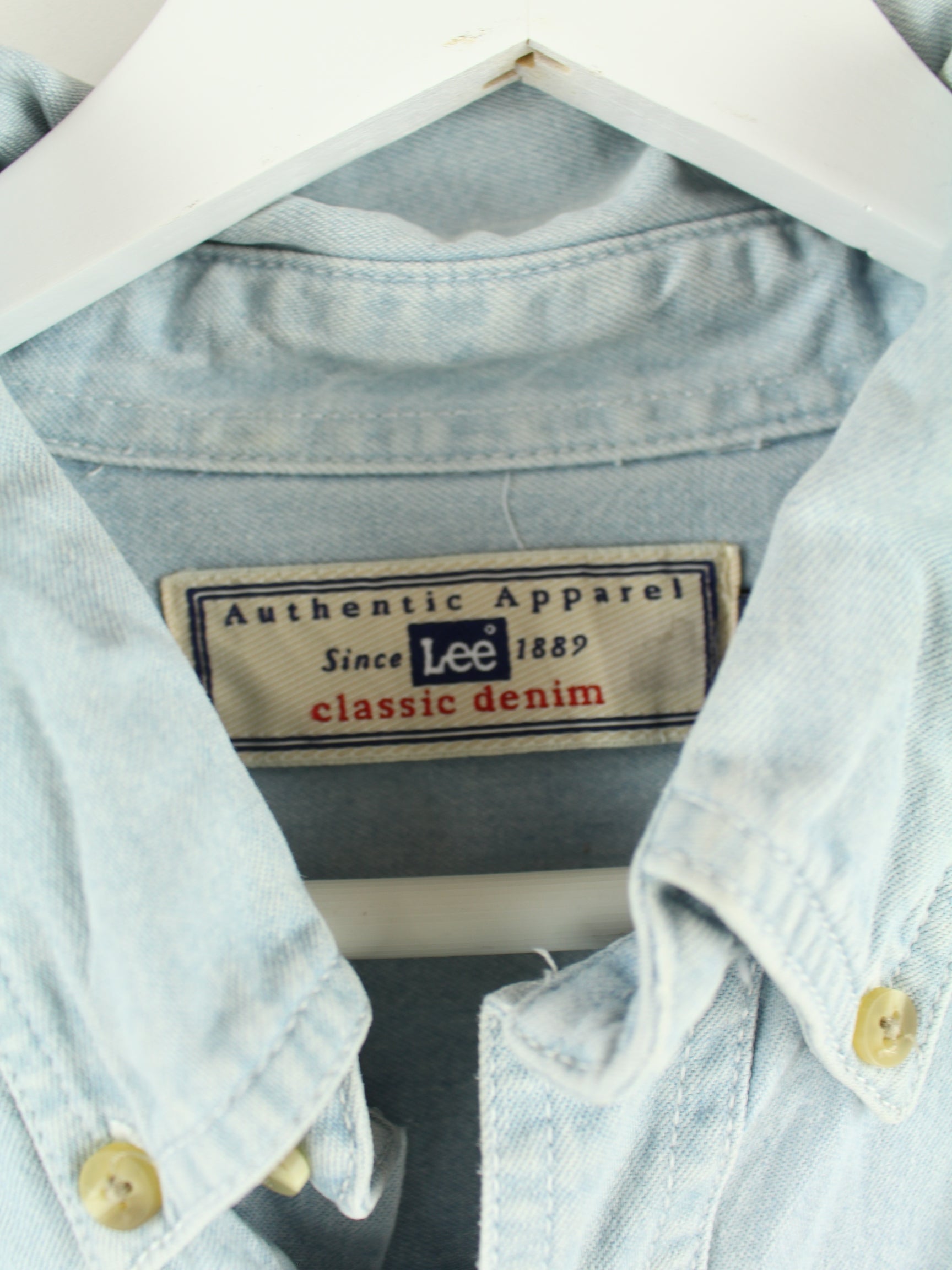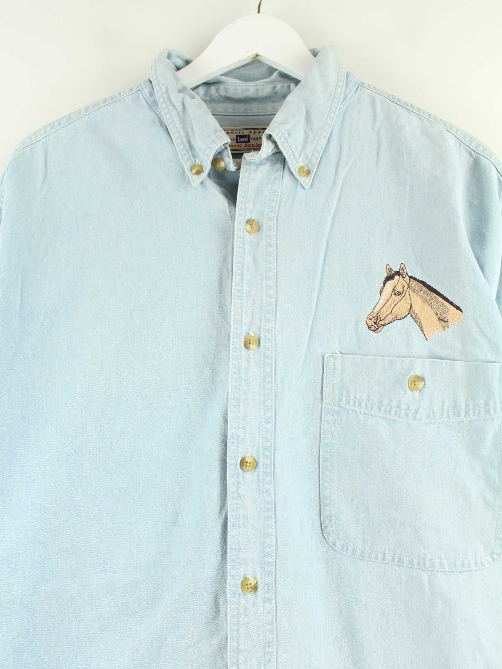 Freizeit Hemd der Marke Lee mit Stick in Größe XXL aus Anfang der 2000'er. Es ist aus Baumwolle gemacht und in Blau bei uns zu bekommen.