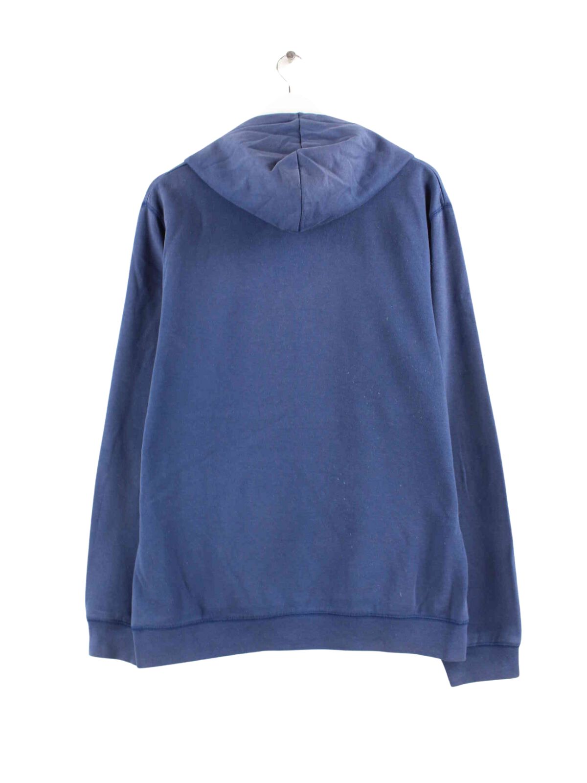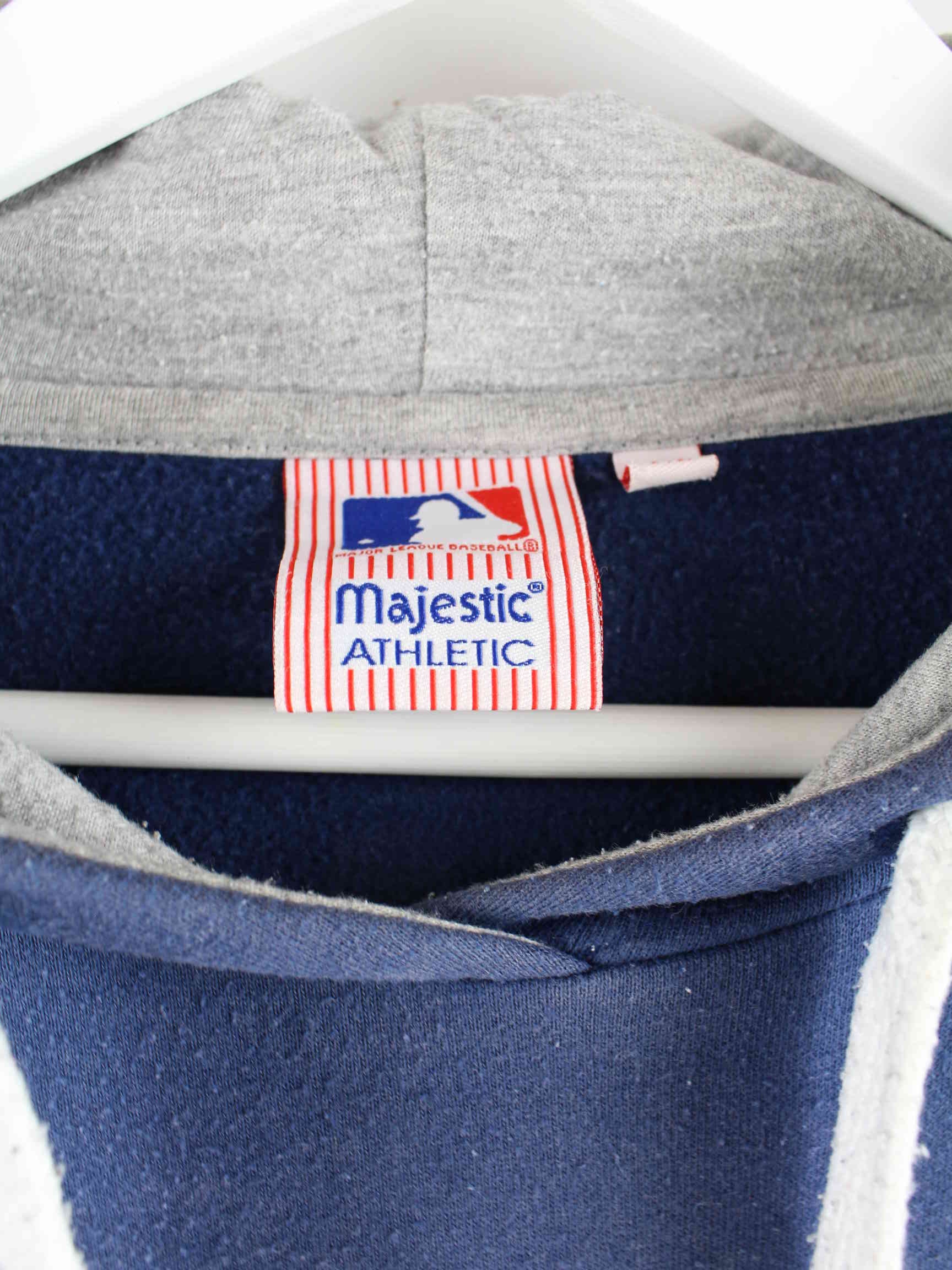 Blauer Hoodie mit gesticktem Logo vom Label Majestic aus Anfang der 2000'er in Größe XL. Er ist aus einer Baumwollmischung angefertigt und in gutem Zustand vorrätig.