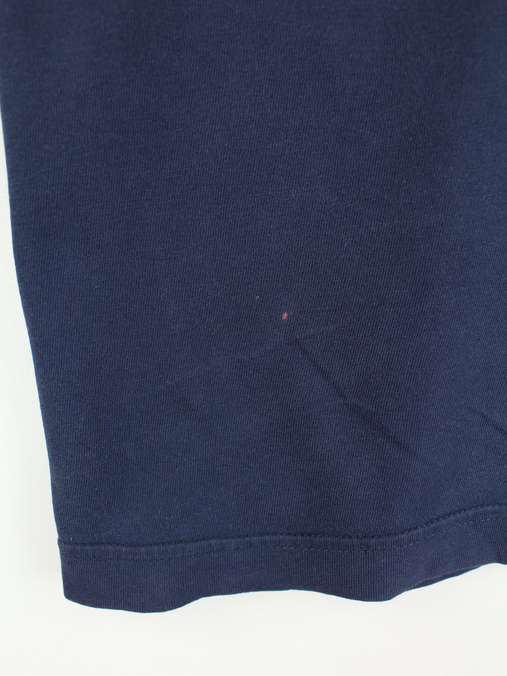 Blaues T-Shirt vom Label Nike in Größe M. Es ist aus Baumwolle produziert und in gutem Zustand zu bekommen. Mit schickem Barcelona Print.