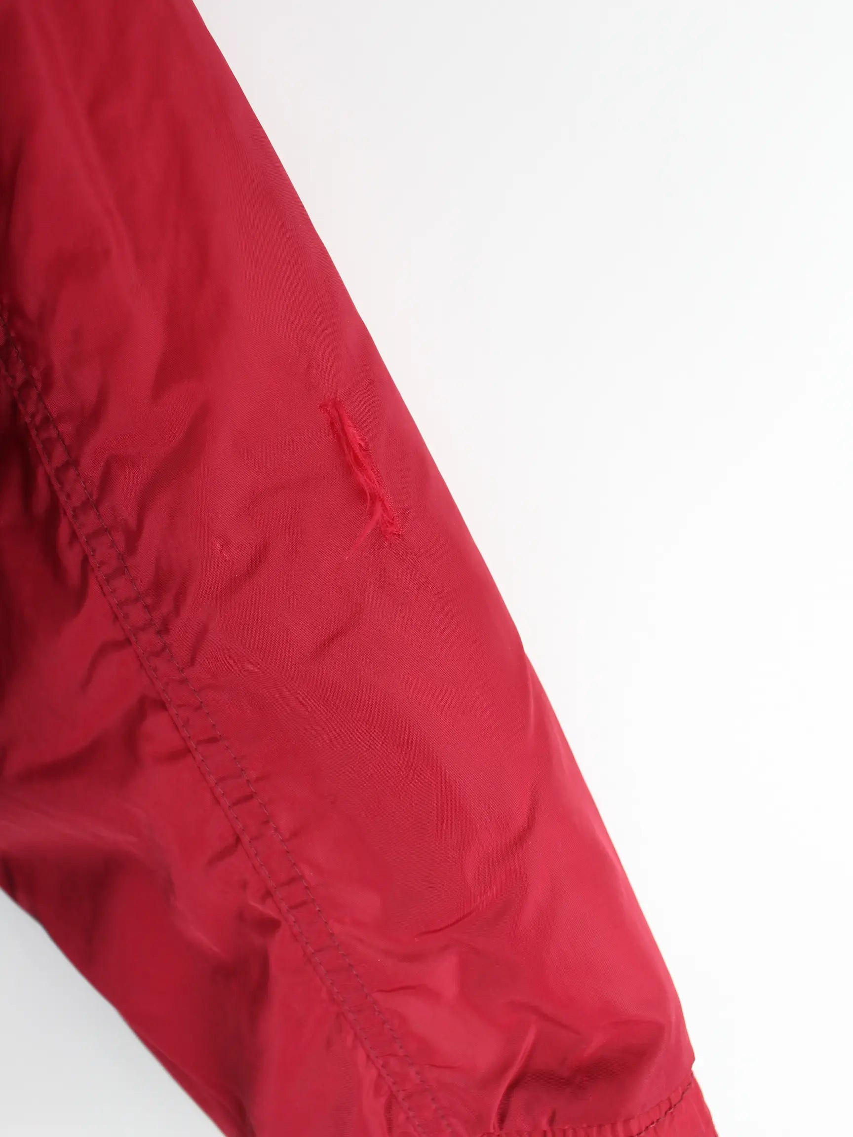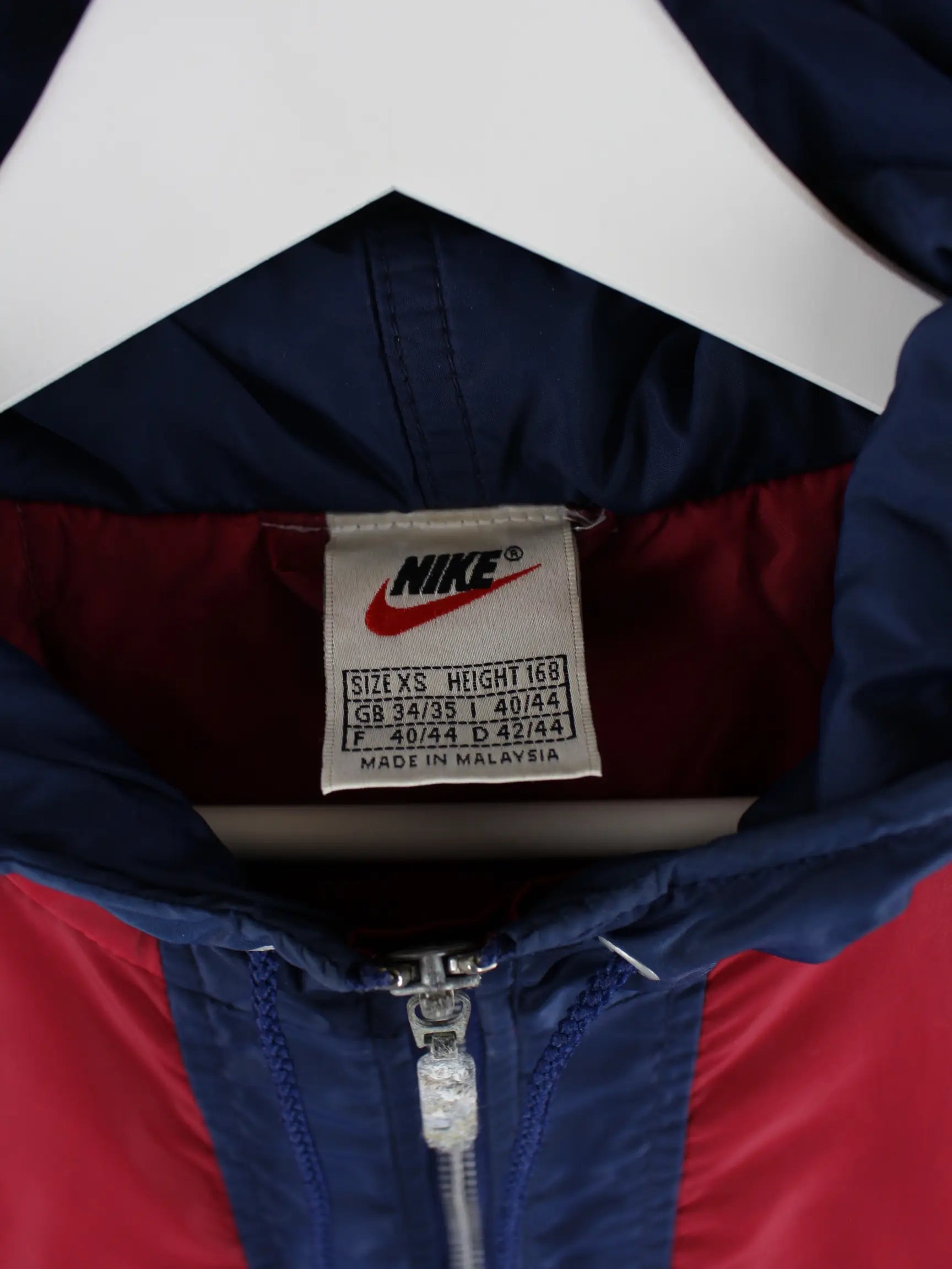 Vintage Nike Windbreaker Jacke in Größe XS aus den 90er Jahren. Sie ist aus Synthetik angefertigt und in Rot zu haben.