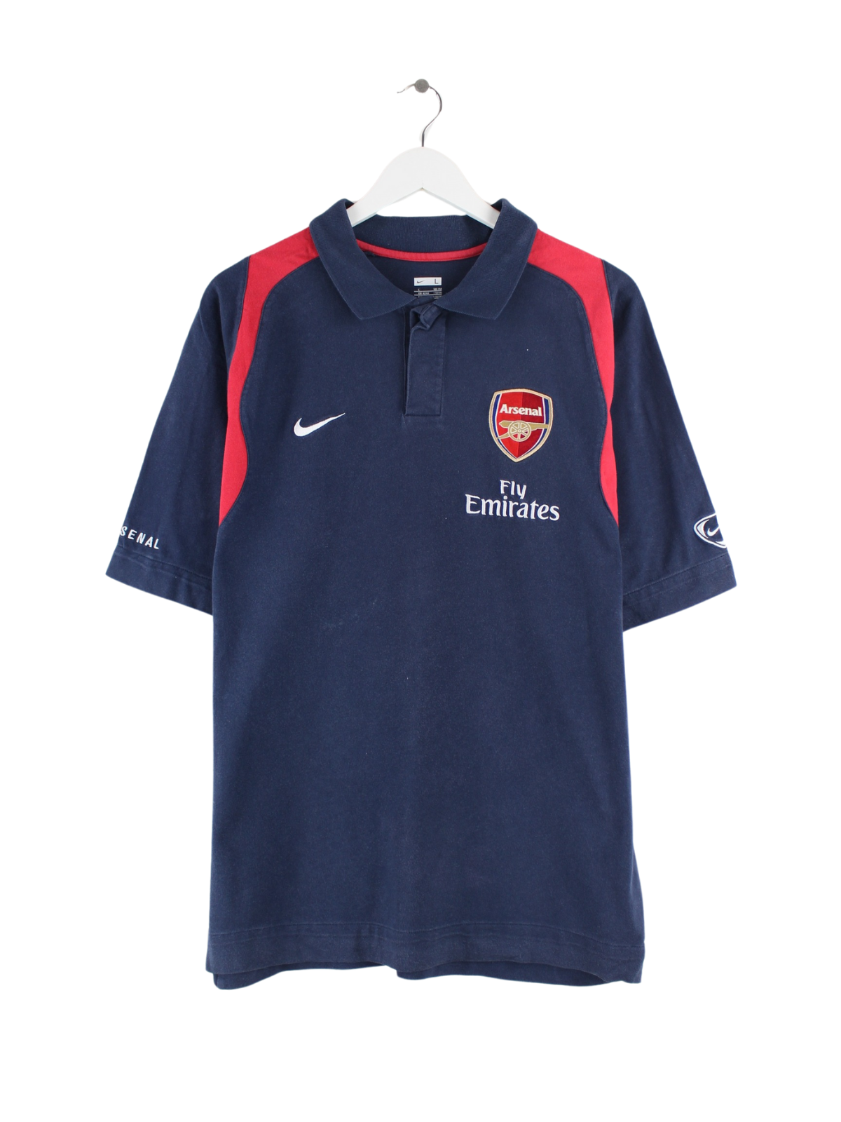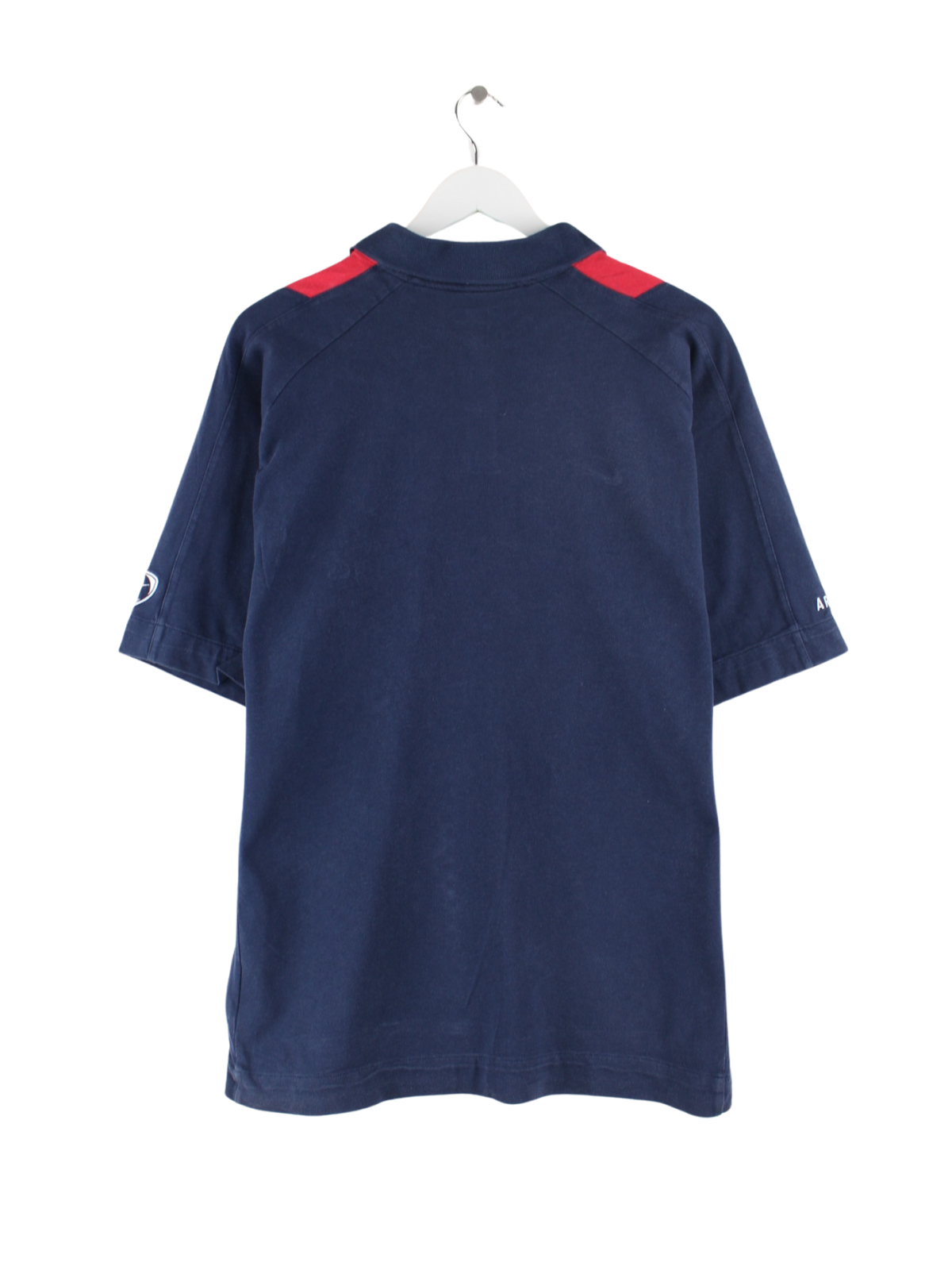 Blaues Poloshirt mit Stickereien der Brand Nike in Größe L. Es ist aus Baumwolle und in gutem Zustand in Stock.