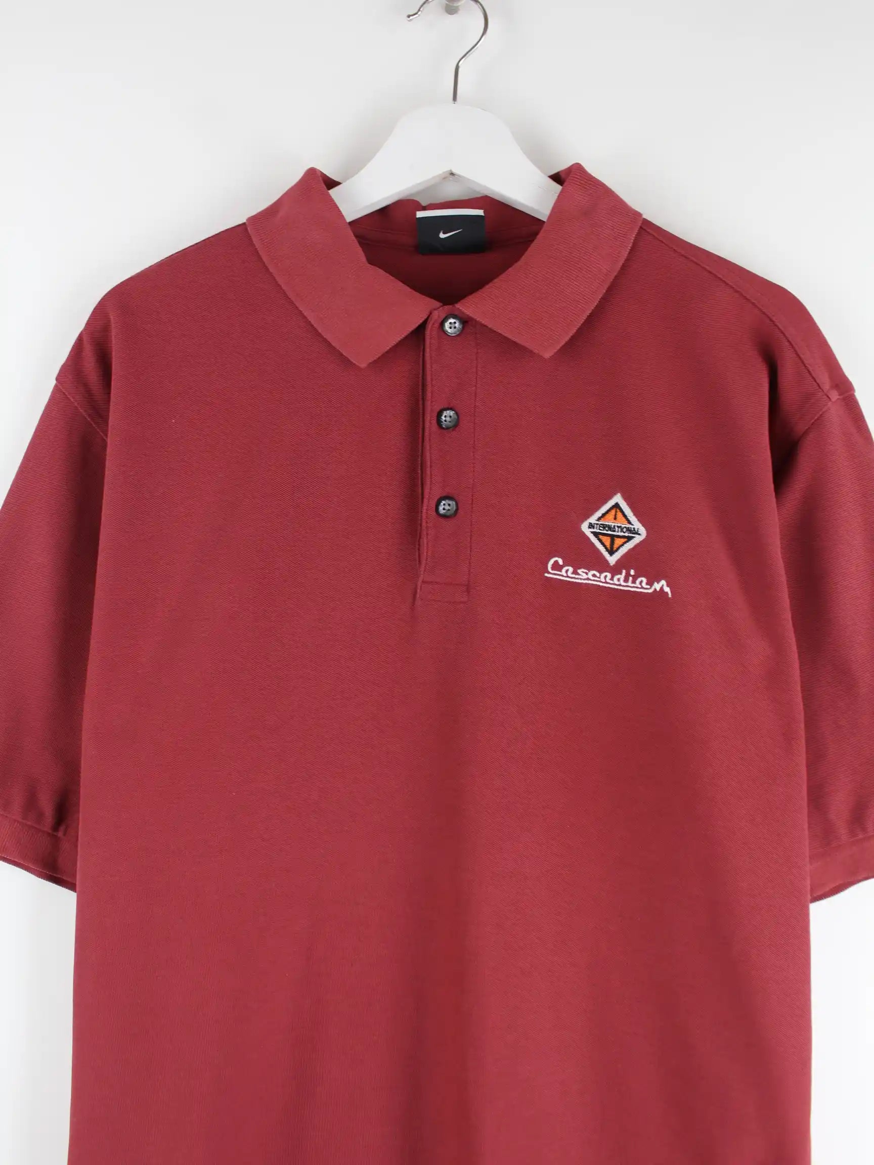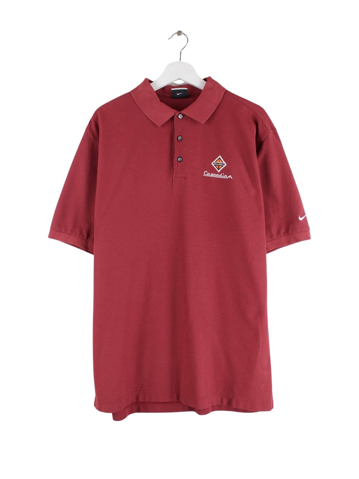 Rotes Poloshirt der Brand Nike in Größe L. Es ist aus Baumwolle und in sehr gutem Zustand in Stock.