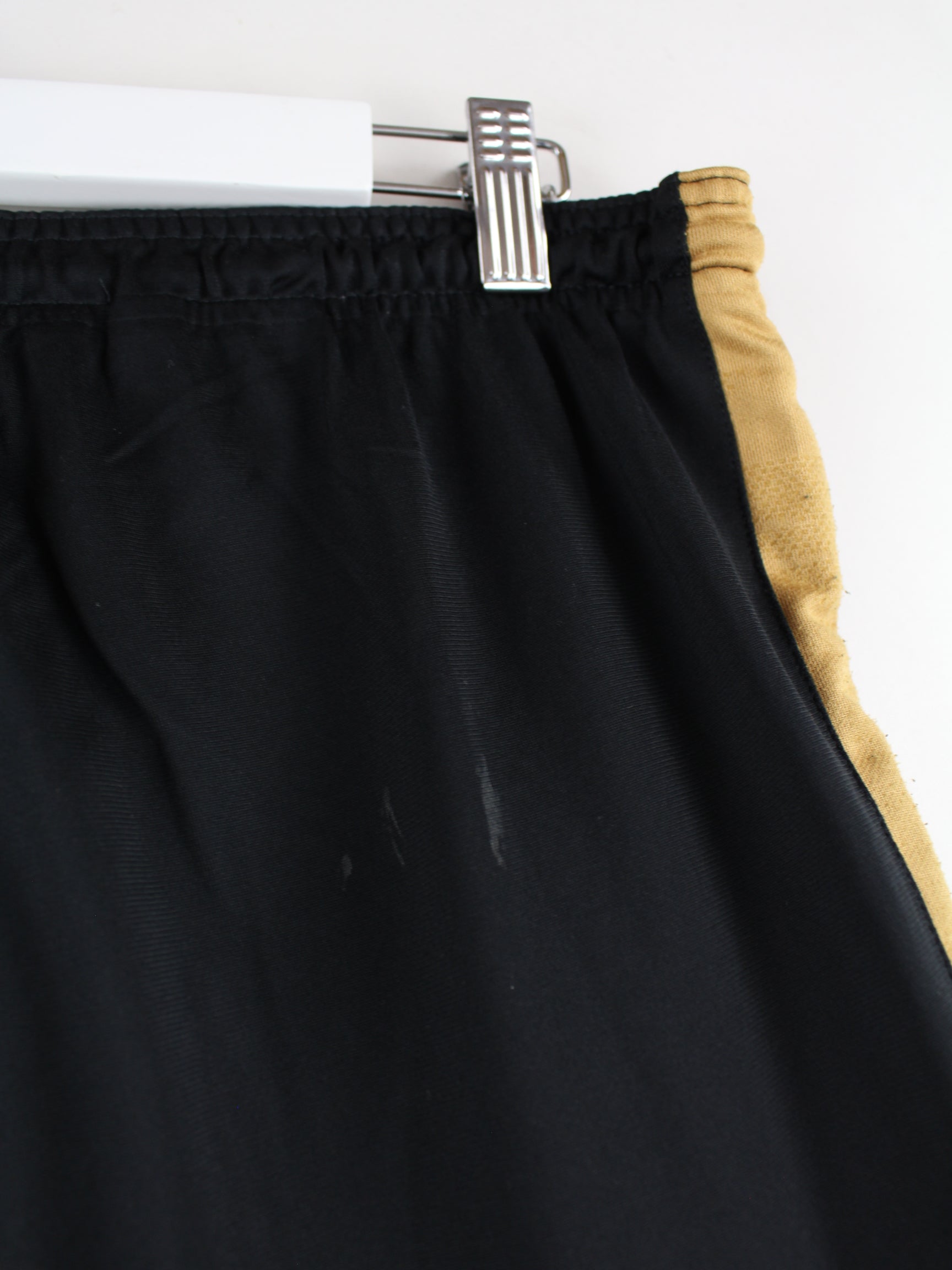 Schwarze Track Pants mit gesticktem Logo vom Label Nike in Größe M. Sie sind aus Synthetik und in gutem Zustand vorrätig.
