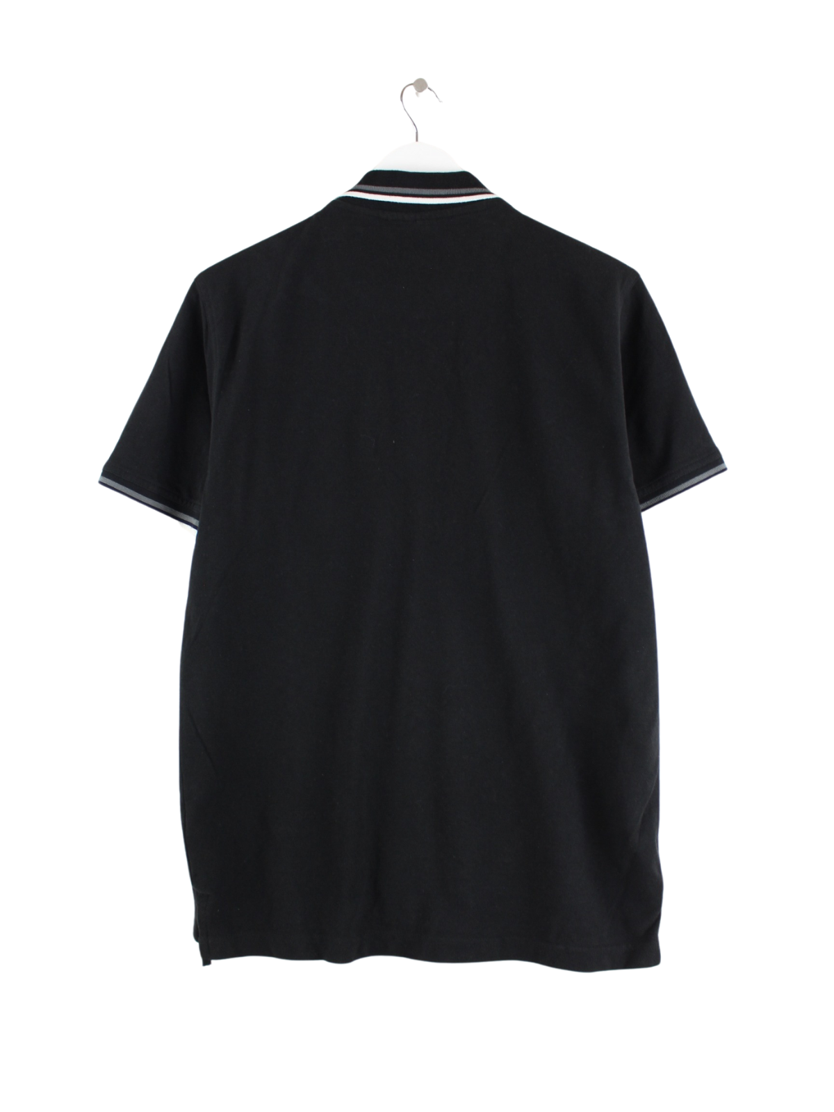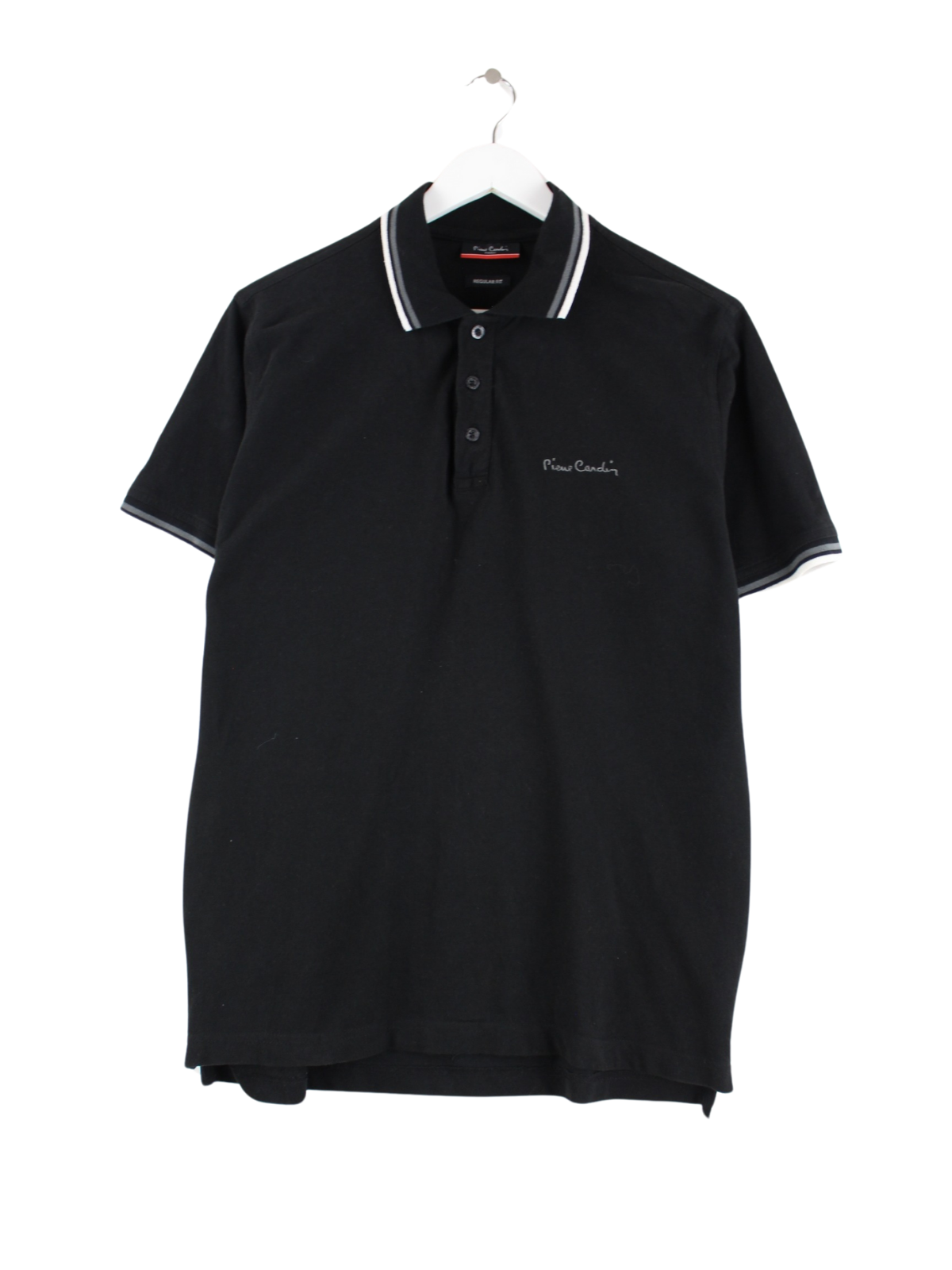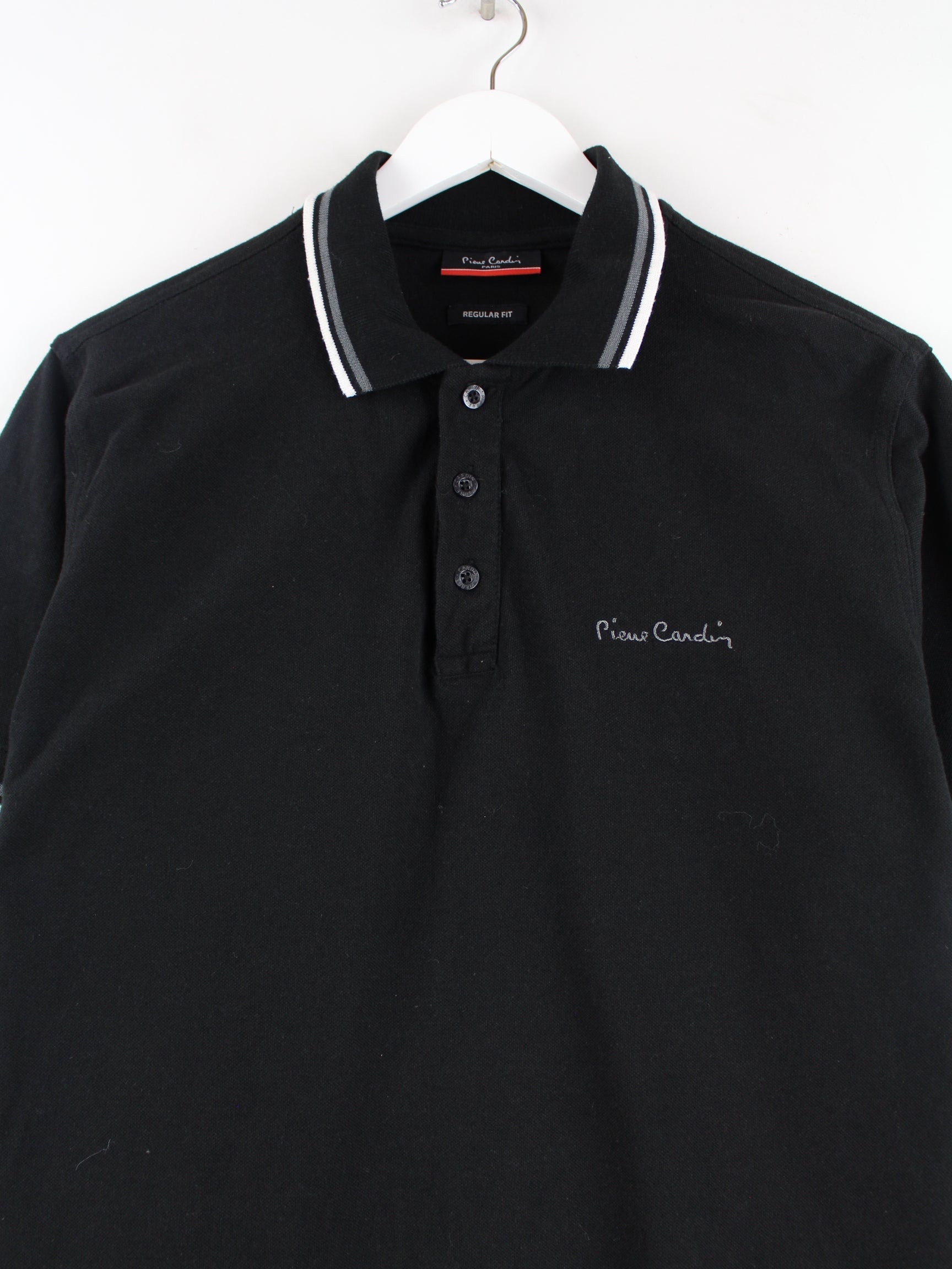 Schwarzes Poloshirt mit gestickten Motiven von Pierre Cardin in Größe M. Es ist aus einer Baumwollmischung gefertigt und in sehr gutem Zustand zu haben.