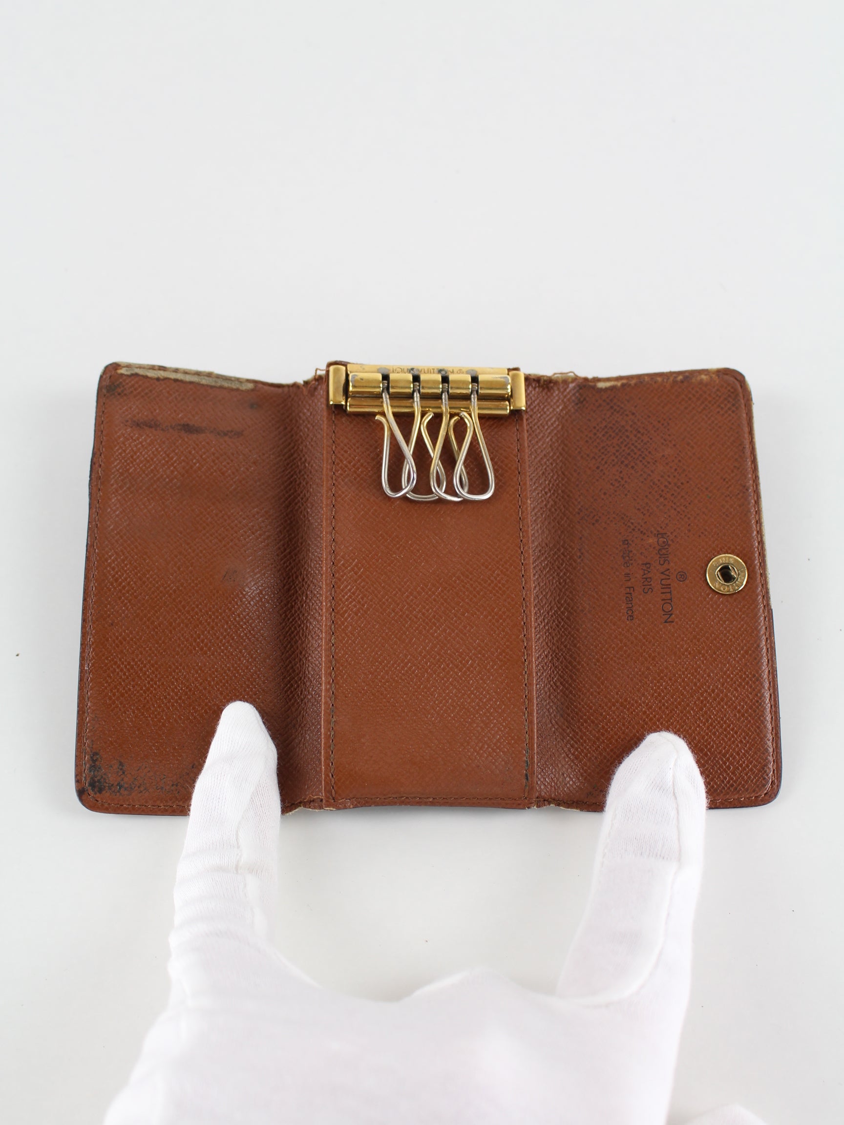Louis Vuitton Vintage Monogramm Leder 4 Key Holder Braun
