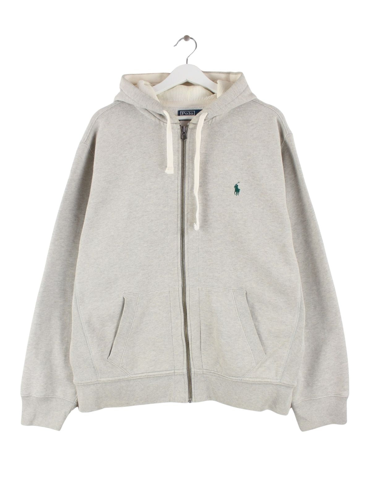 Grauer Hoodie mit durchgehendem Reißverschluß von Ralph Lauren in Größe L. Er ist aus einer Baumwollmischung produziert und in gutem Zustand vorrätig.