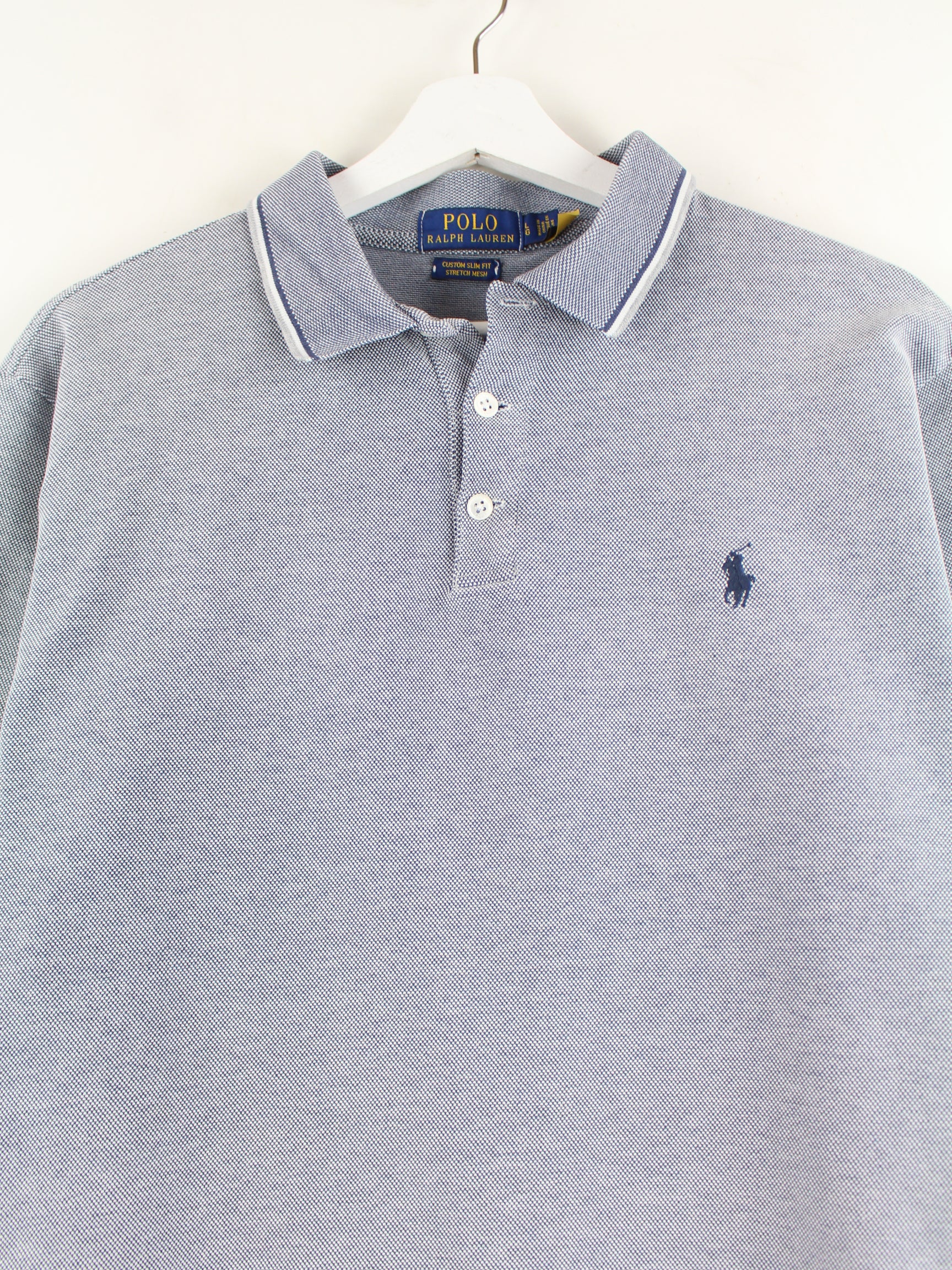 Graues Poloshirt der Marke Ralph Lauren in Größe M. Es ist aus einer Baumwollmischung gemacht und in sehr gutem Zustand auf Lager.