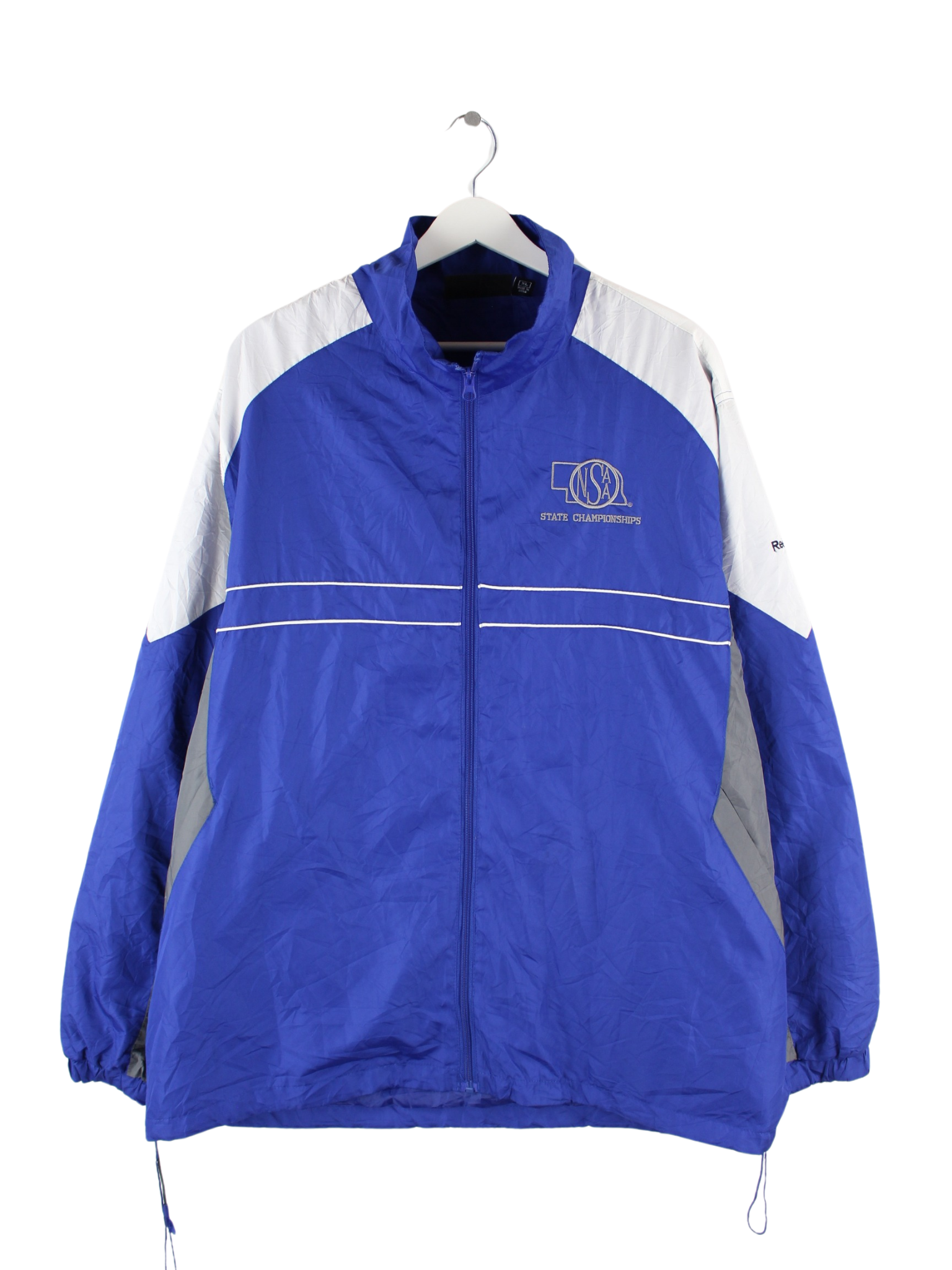Trainingsjacke von Reebok in Größe XXL. Sie ist aus Synthetik angefertigt und in Blau bei uns vorrätig.