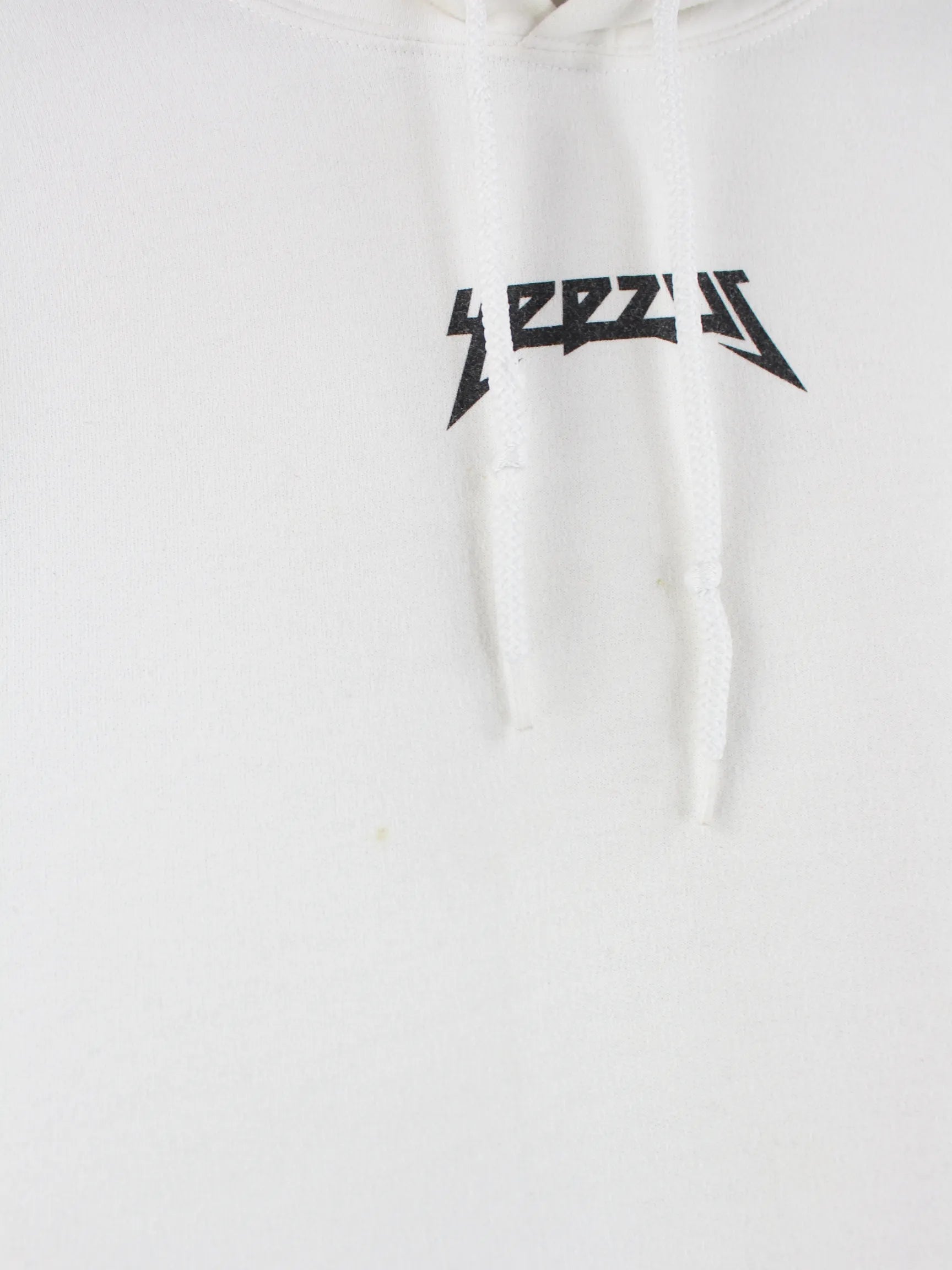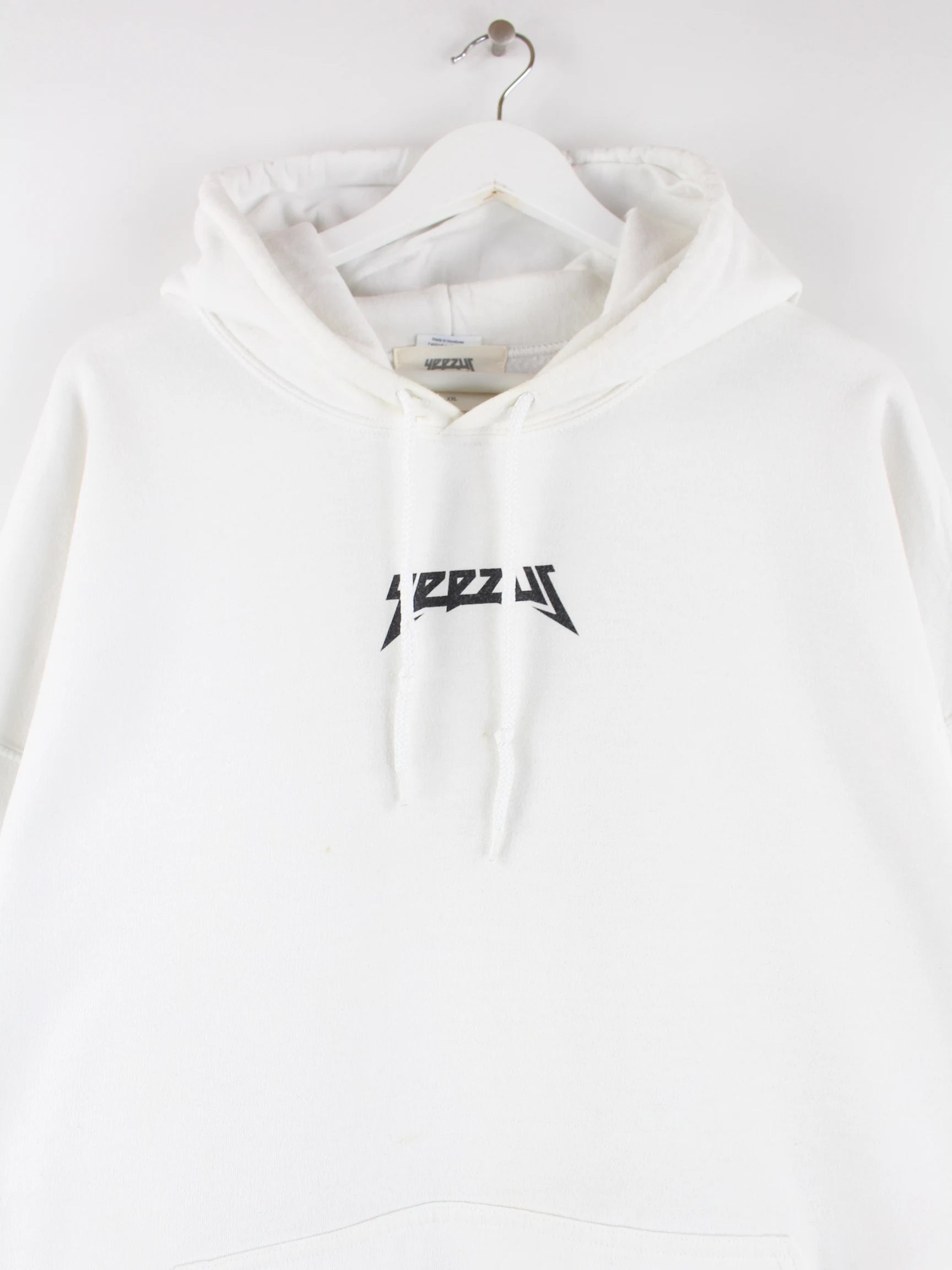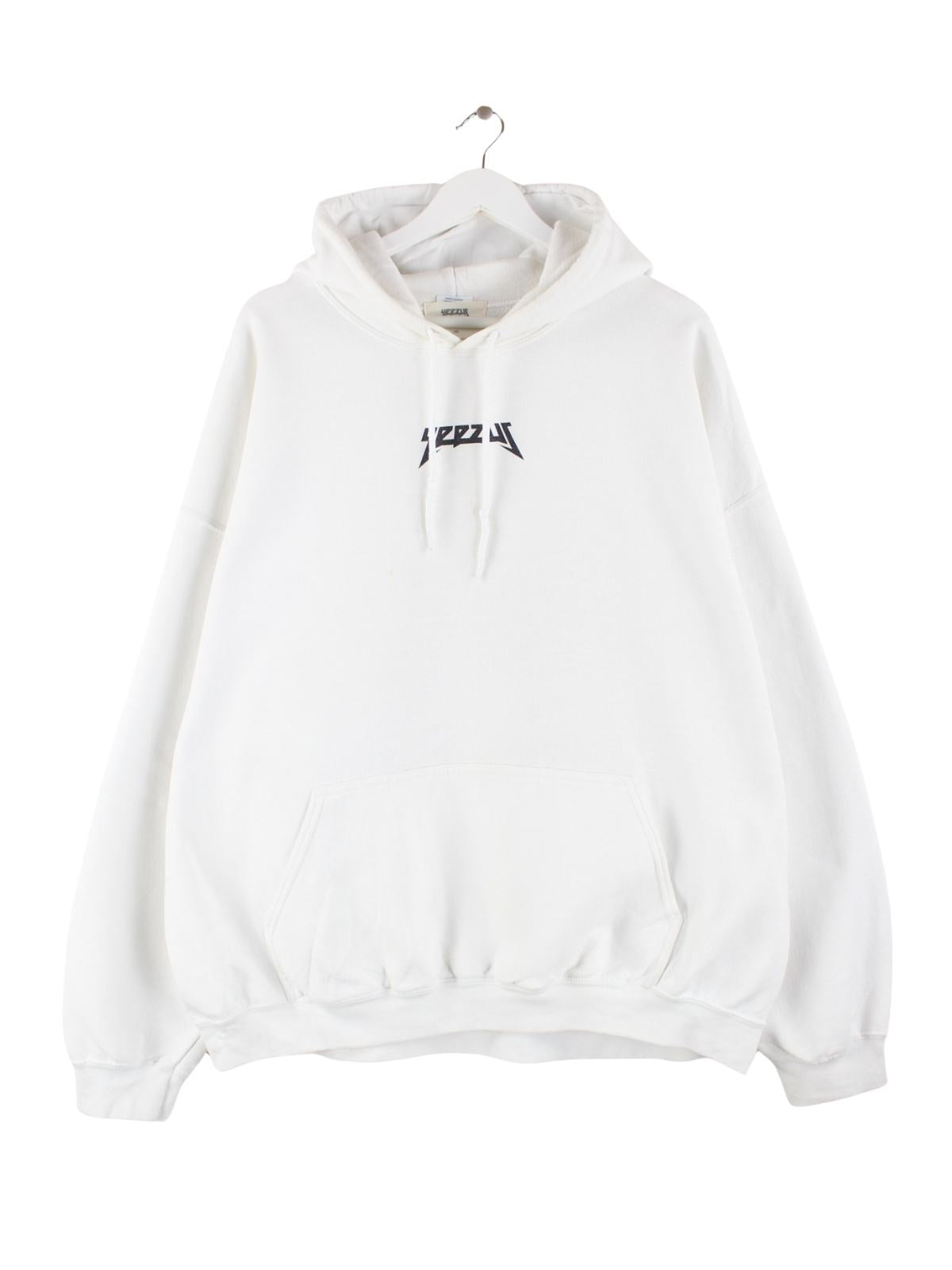 Weißer Hoodie der Marke YEEZY in Größe XXL. Er ist aus einer Baumwollmischung hergestellt. Den Zustand würden wir als 'In Ordnung' bezeichnen (vergl. Bilder).Mit seltenem Unreleased Print.