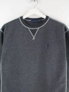 Grauer Sweater der Brand Ralph Lauren in Größe XS. Er ist aus einer Baumwollmischung und in sehr gutem Zustand im Bestand.