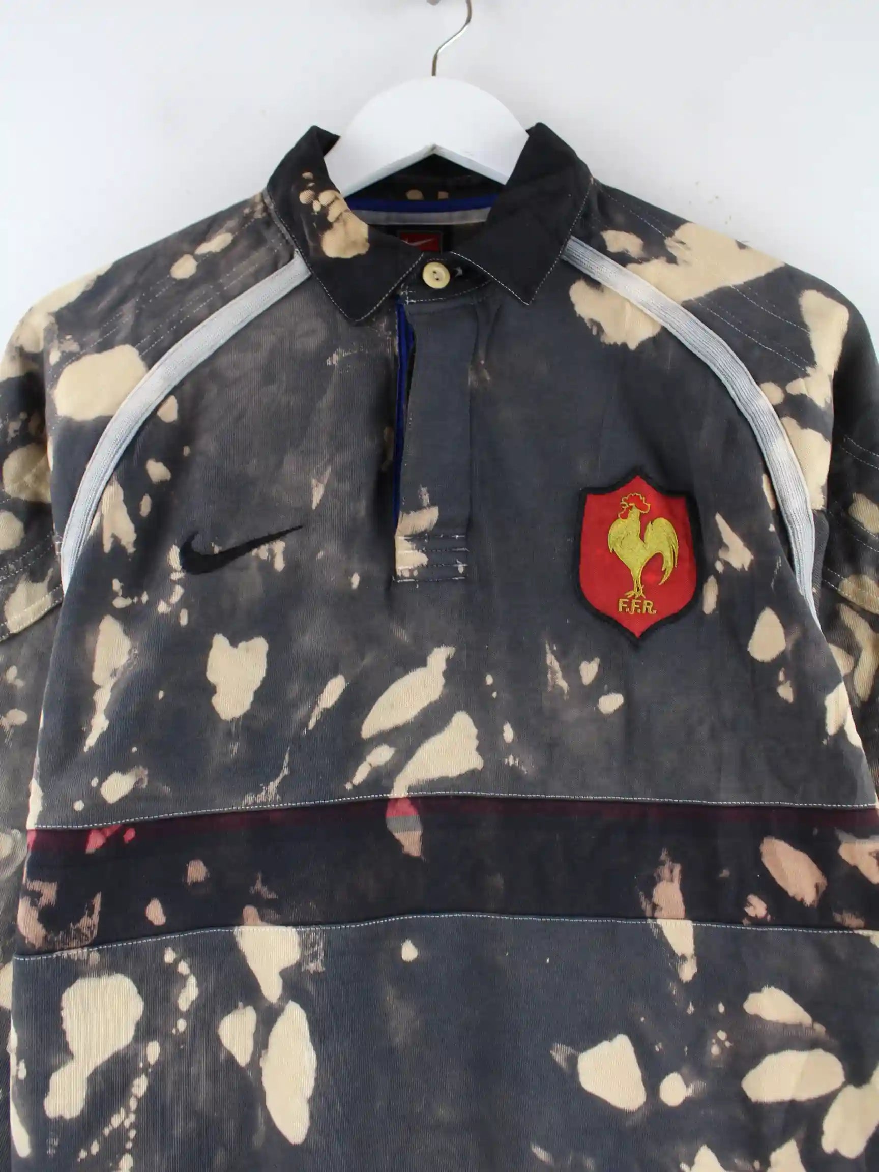 Nike 00s France Rugby Rework Tie Dye Langarm Polo Grau M