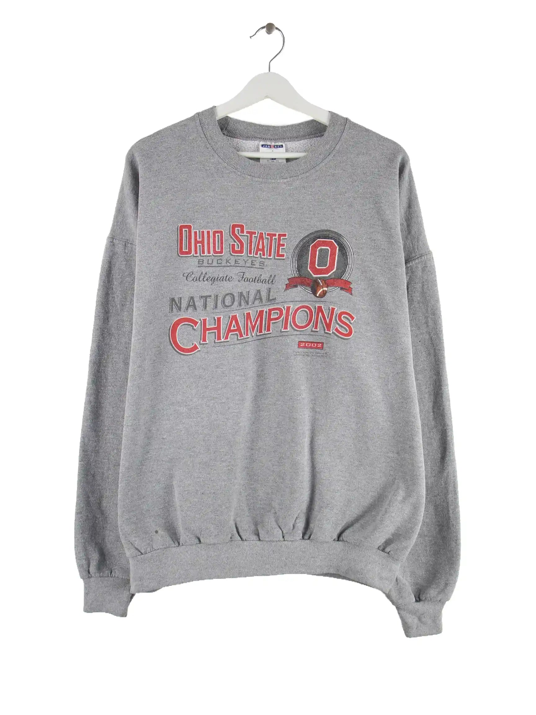 Grauer Sweater vom Label Jerzees in Größe XL. Er ist aus einer Baumwollmischung gefertigt und in gutem Zustand im Angebot. Mit schickem Buckeyes Print.