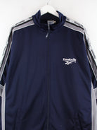 Trainingsjacke vom Brand Reebok in Größe XXL. Sie ist aus Synthetik angefertigt und in Blau bei uns vorrätig.